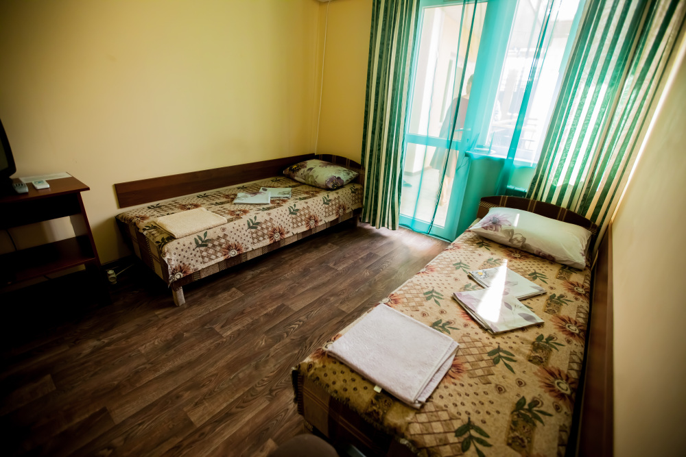 Все номера со всеми удобствами. 2-х спальная кровать и односпальная.