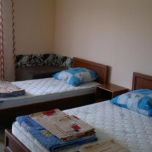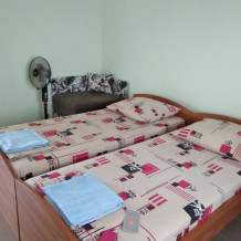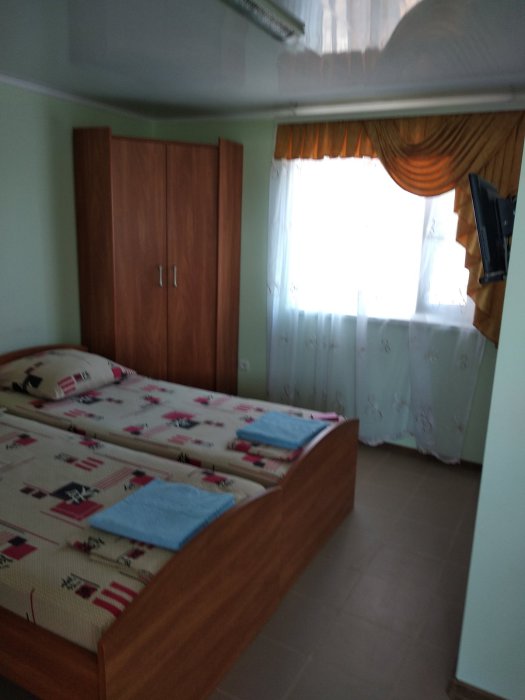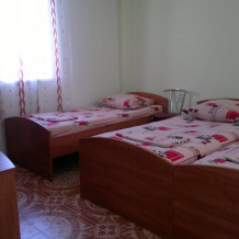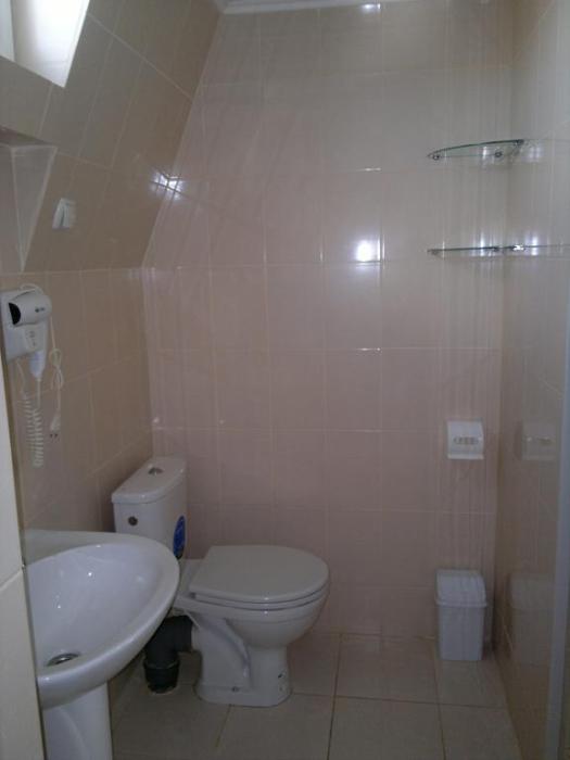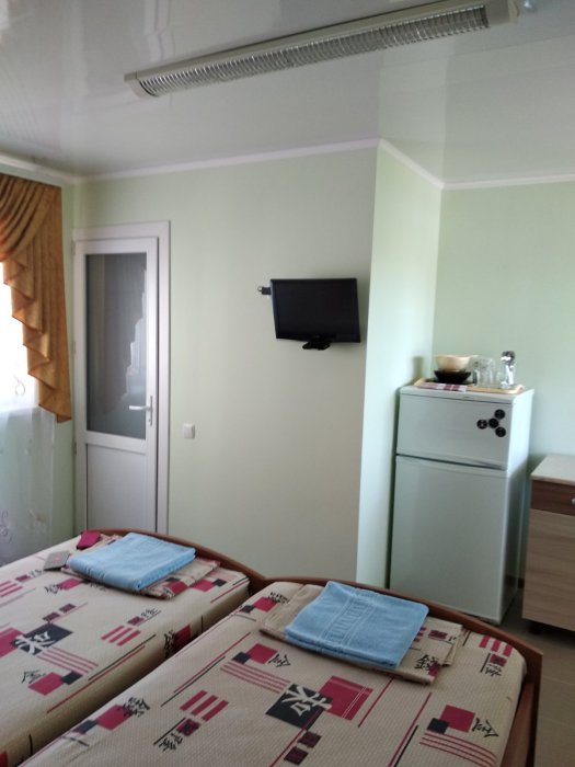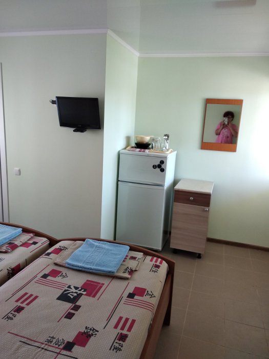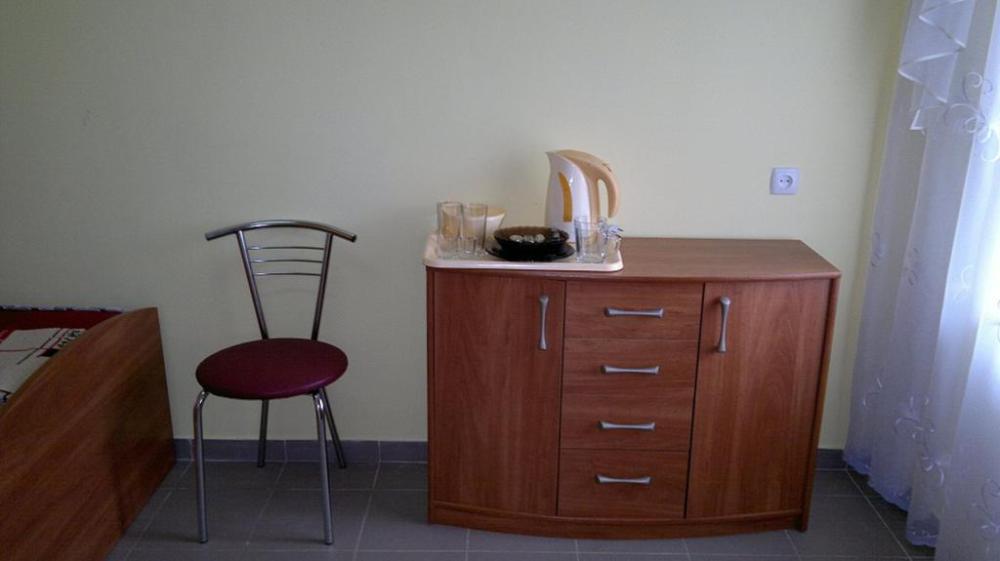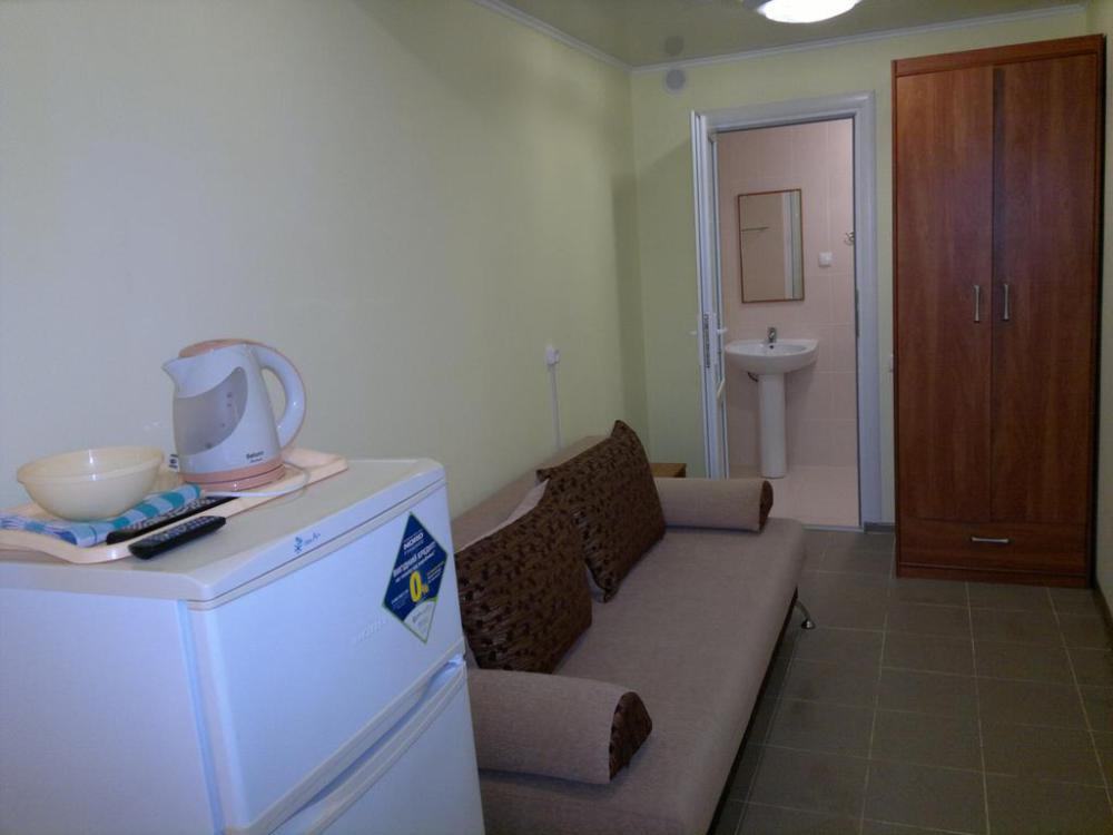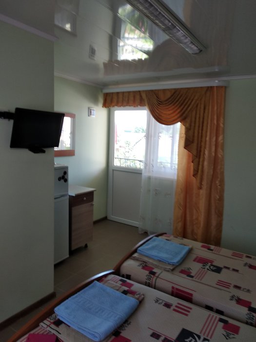 Номер светлый (два окна), уютный. Имеет личное место для посиделок и отдыха на свежем воздухе на общей террасе. Укомплектован всей необходимой посудой и шкафчиком для продуктов. Санузел в номере состоит из раковины, унитаза, душа.
