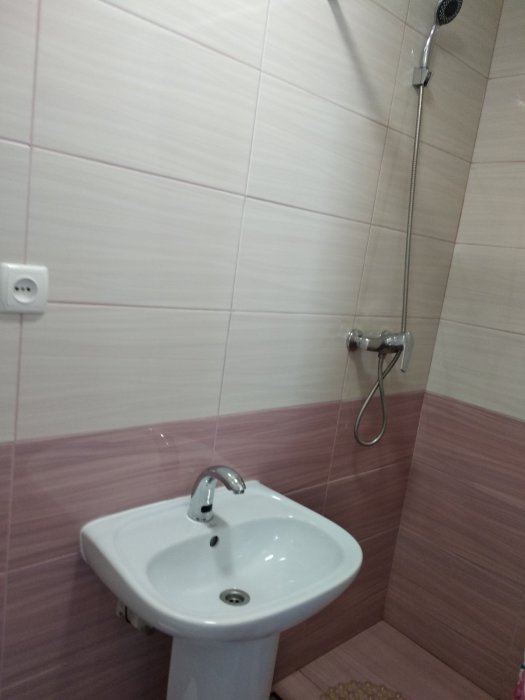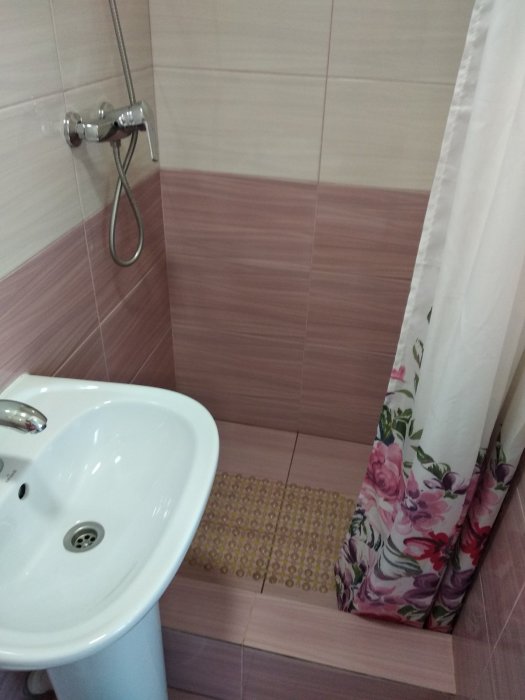 Санузел: раковина, унитаз, душ.