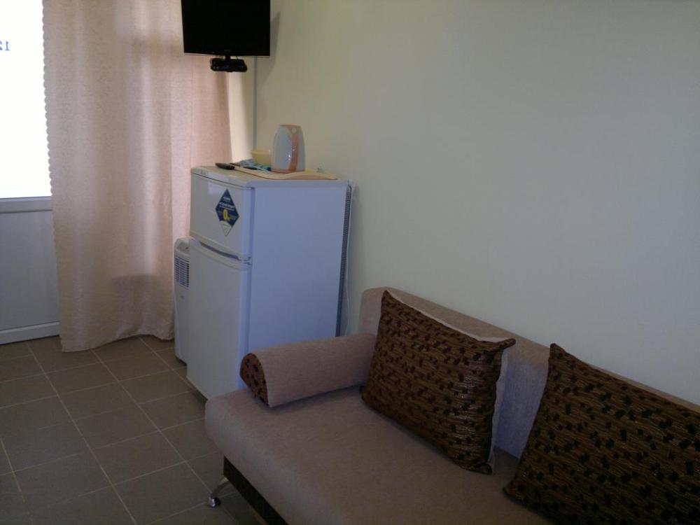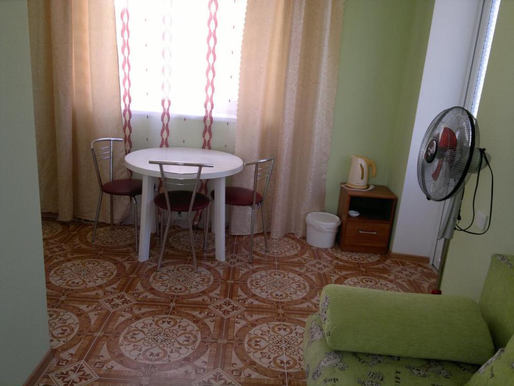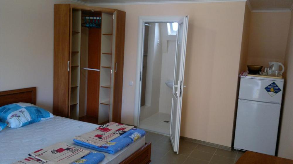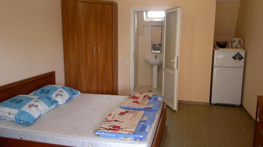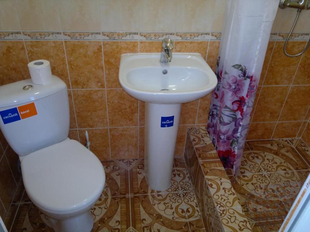 Номер теневой, прохладный, имеет обособленную личную террасу для посиделок и отдыха на свежем воздухе. Укомплектован всей необходимой посудой. Санузел в номере состоит из раковины и унитаза, душ общий в 3-4 метрах.