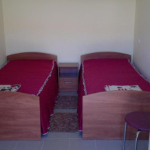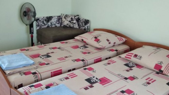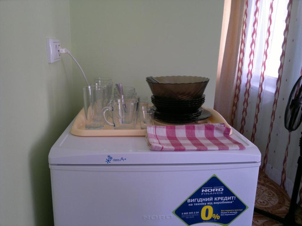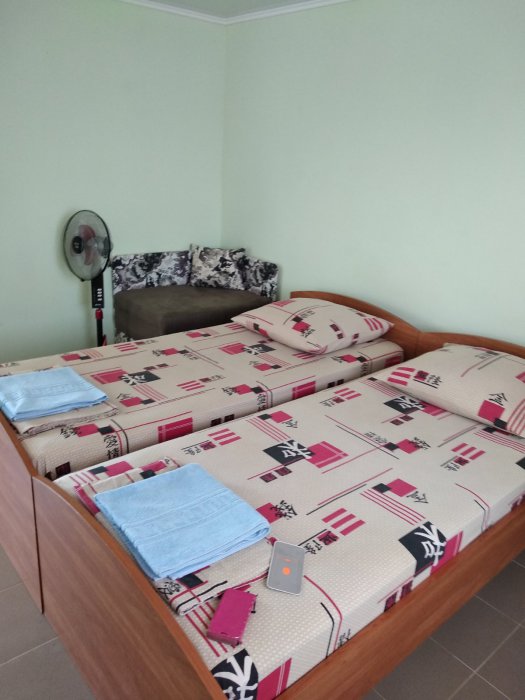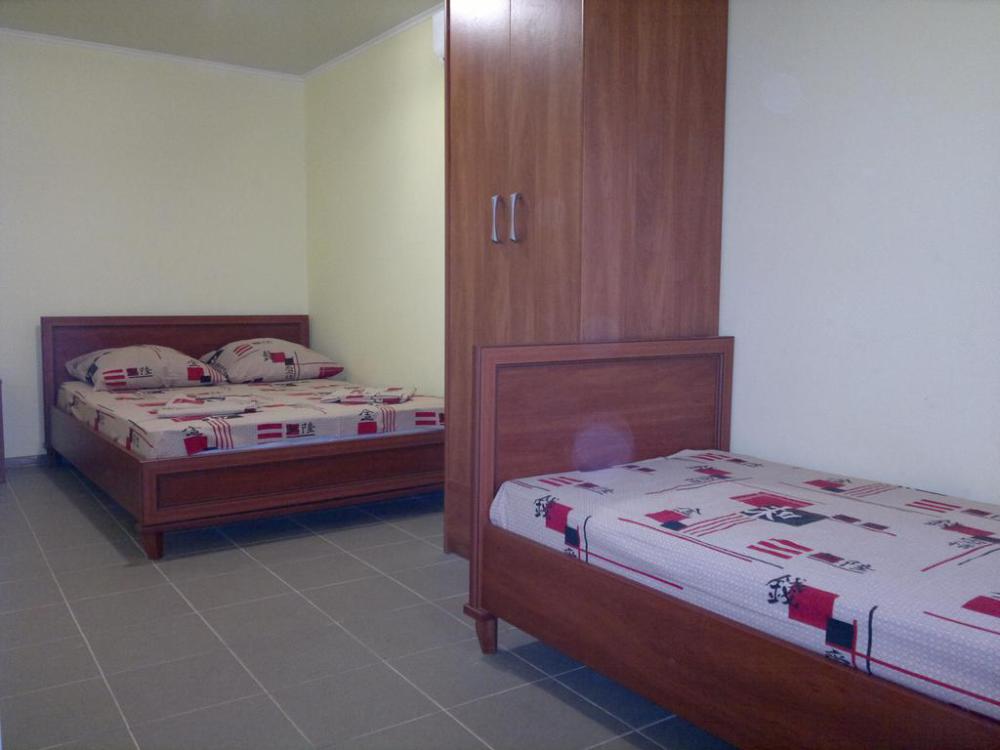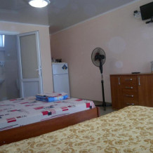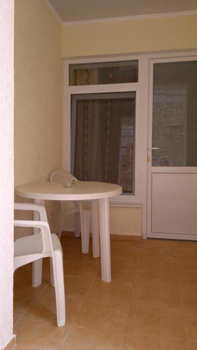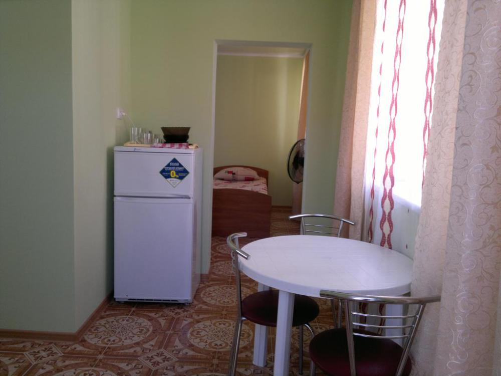Номер теневой, прохладный, имеет обособленную личную террасу для посиделок и отдыха на свежем воздухе. Укомплектован всей необходимой посудой. Санузел в номере состоит из раковины и унитаза, душ общий в 3-4 метрах.