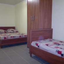 Номер состоит из двух комнат (3 и 2 спальных места). Имеет прихожую и террасу рядом с номером для посиделок и отдыха на свежем воздухе. Укомплектован всей необходимой посудой.
