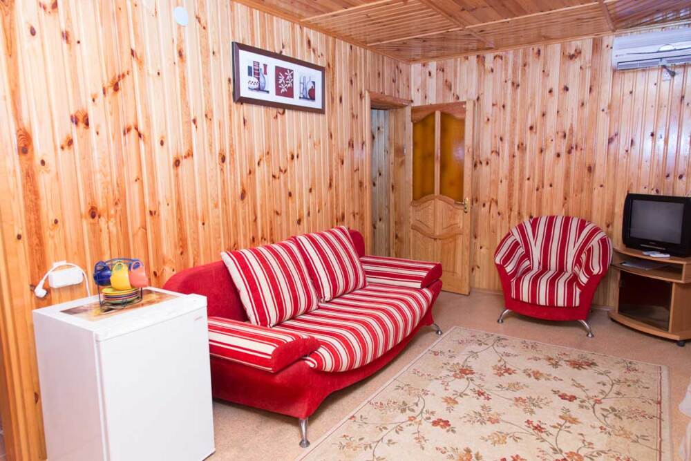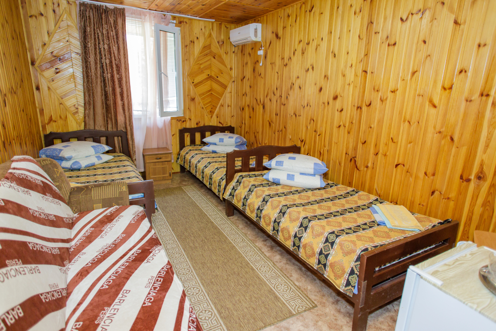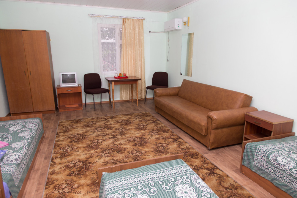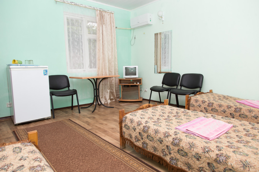 Уютная обстановка в номерах, все удобства, кондиционеры и горячая вода.