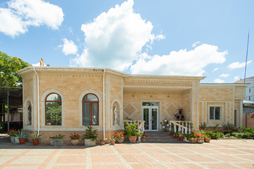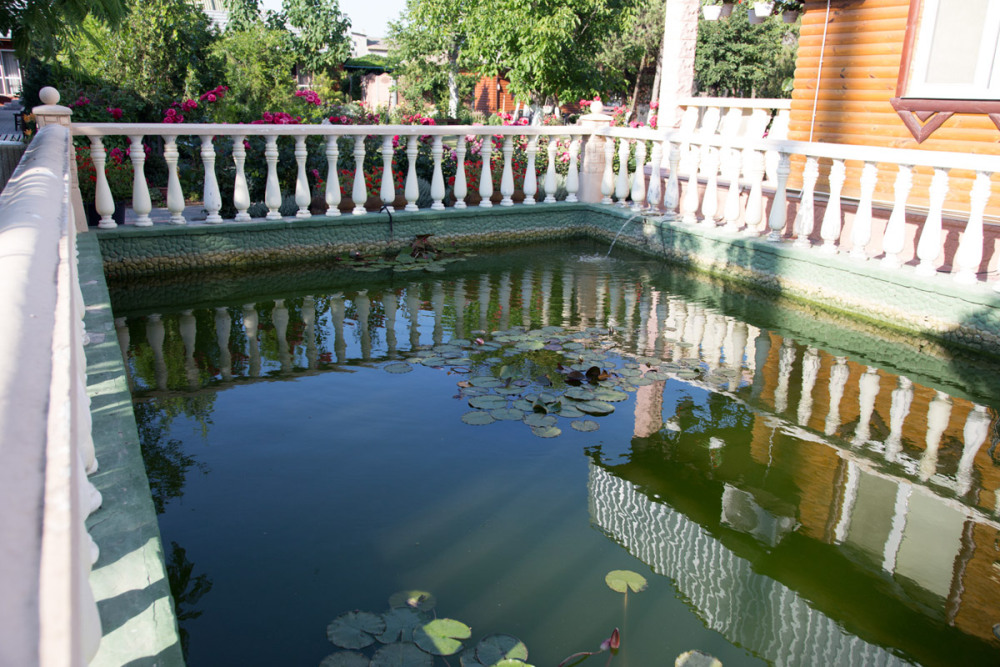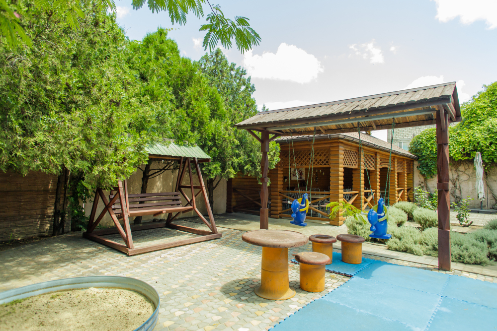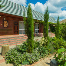 Благоустроенная территория, утопающая в зелени, впечатляющее количество и разнообразие цветов, много лавочек в тени под Крымскими можжевельниками в окружении благоухающих роз.
