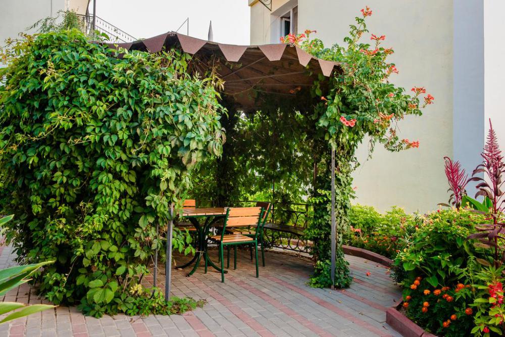 У нас вы сможете отдохнуть и большой семьей, и веселой компанией, и влюбленной парой. Вы проведете время в уютной, домашней обстановке. На территории нашего дома есть уютная беседка и качели с навесом, маленький фонтан и вечерняя подсветка. Приятно закончить жаркий день вы сможете вечером, лежа на восточном топчане и покуривая кальян на вине. Для самых маленьких у нас есть песочница и игрушки. Так же на территории имеется мангал.