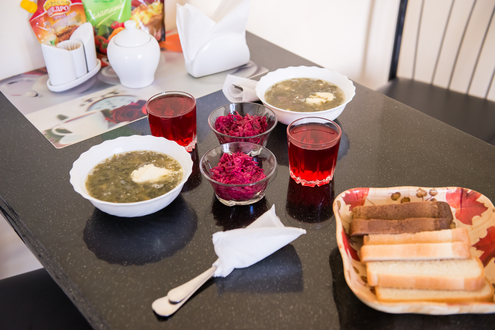 При желании вы сможете кушать у нас. Мы рады предложить Вам вкусное и разнообразное домашнее угощение. Блюда русской и восточной кухни, обед и ужин.
