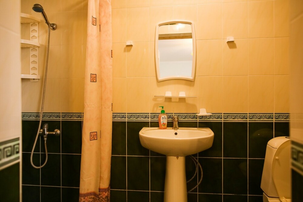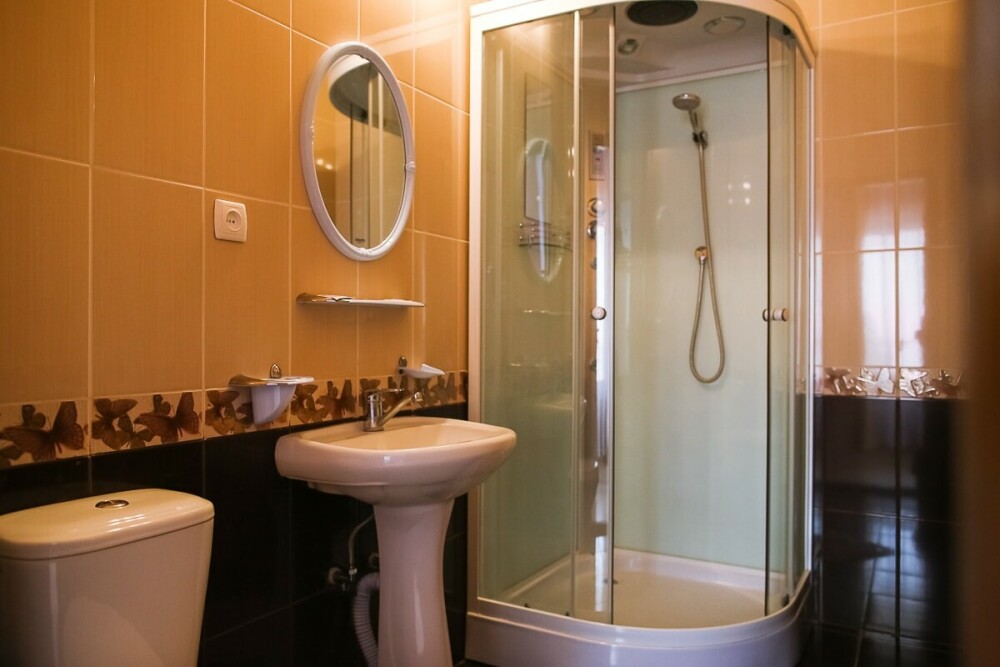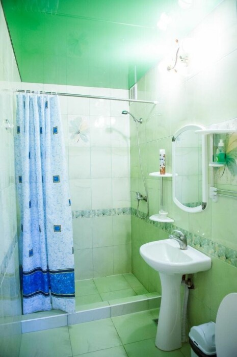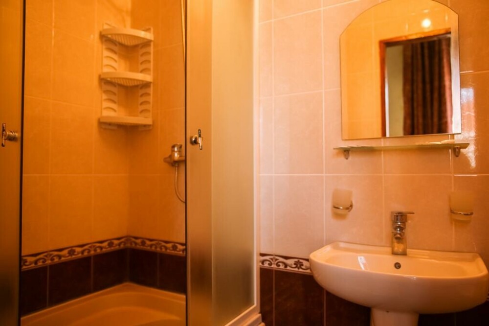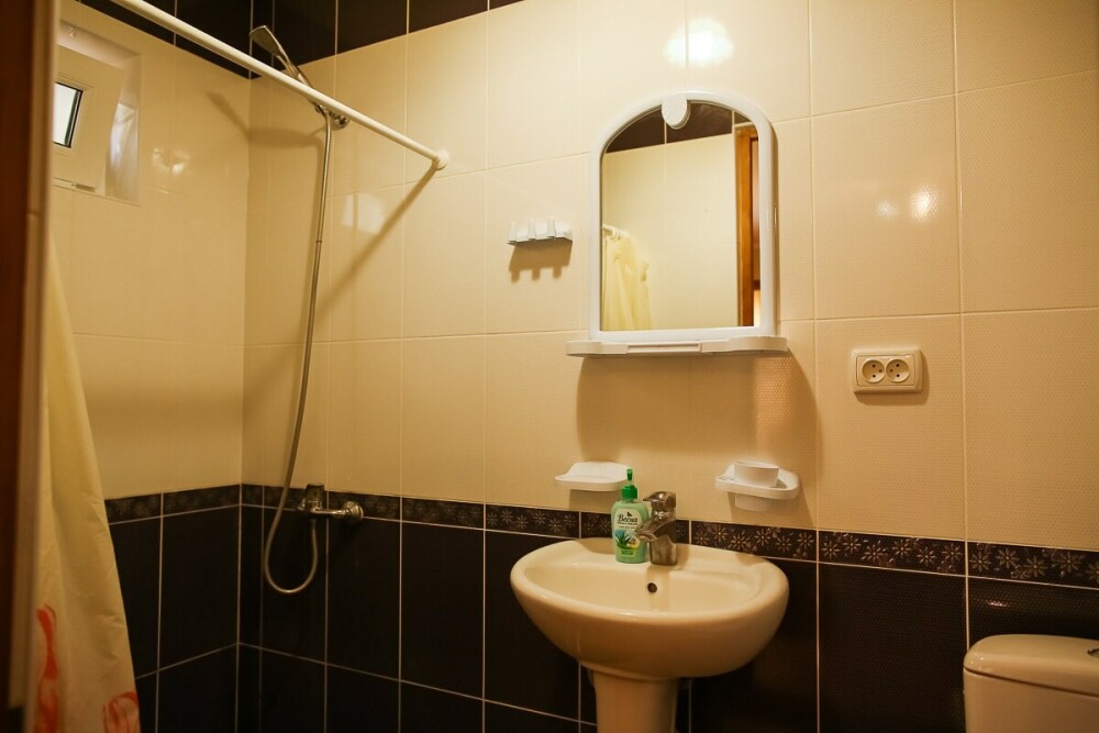 В каждом номере: санузел с умывальником, душем и унитазом.