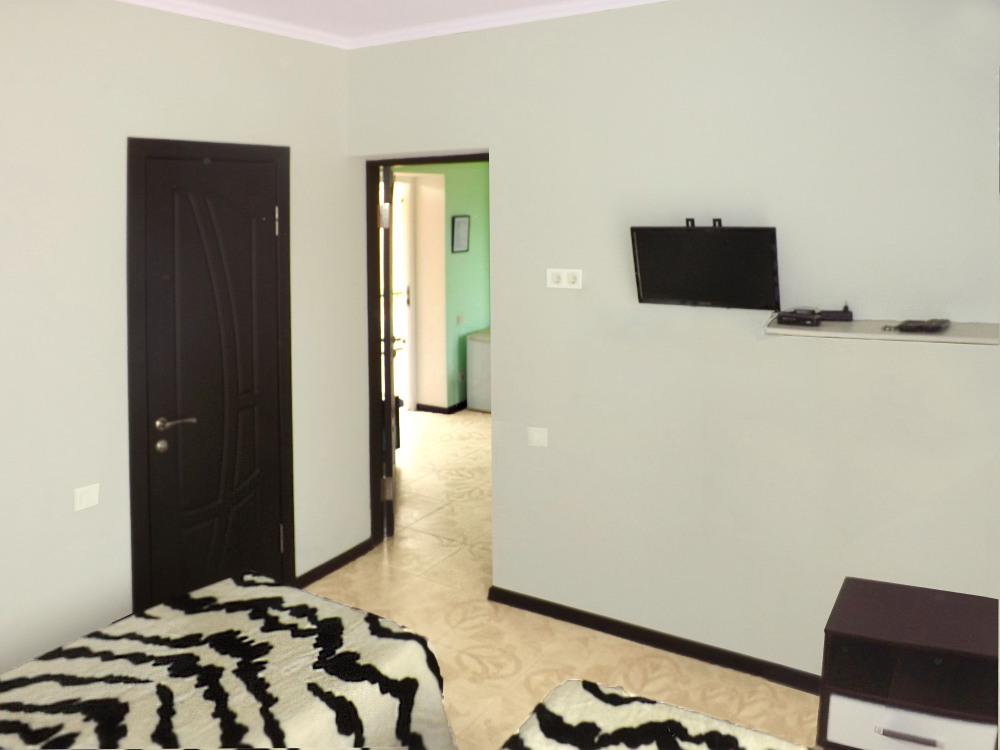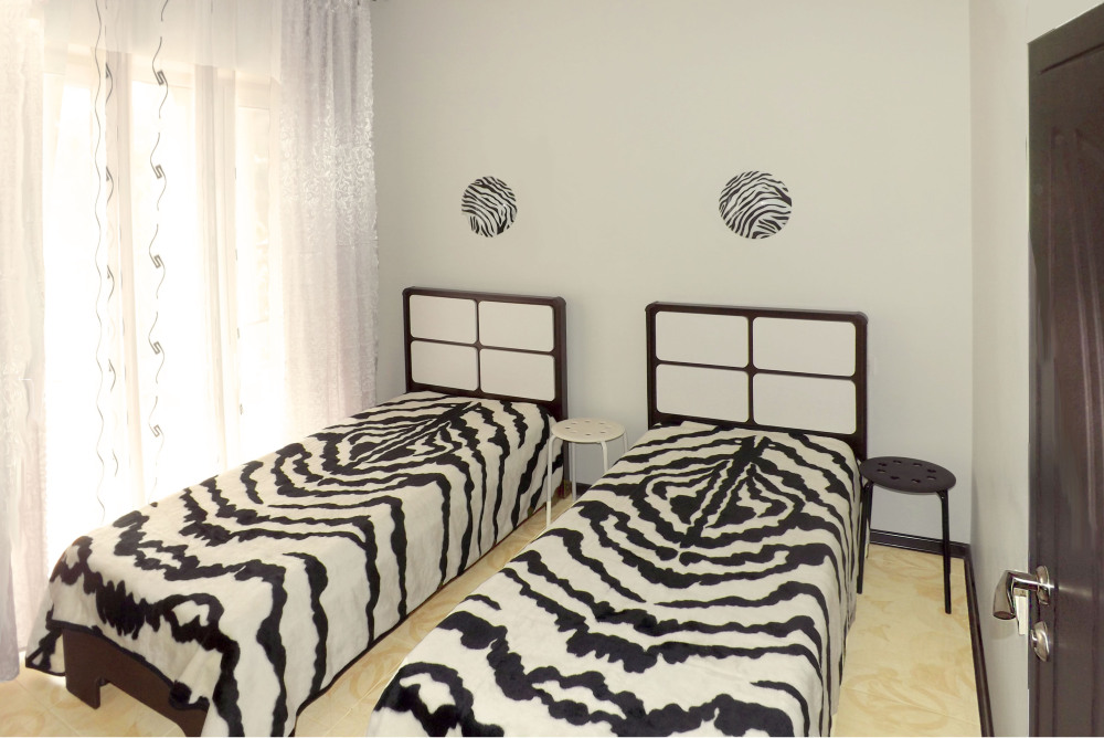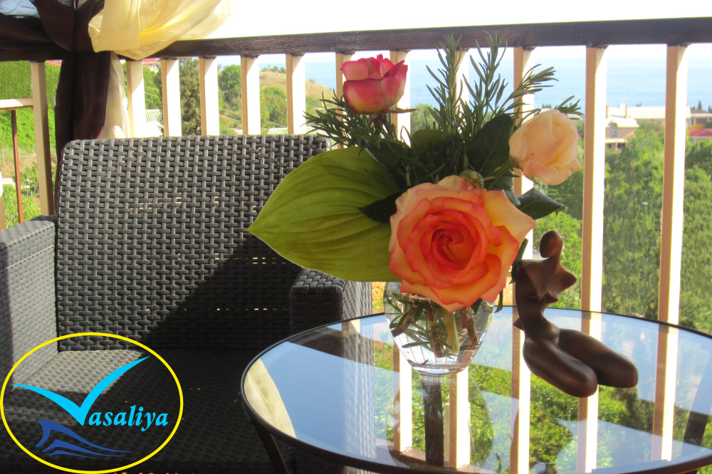 2-х комнатный номер (в каждой комнате санузел), большой балкон+терраса, расположен на 2-м этаже Виллы Васалия. Вид на море. Удобства: две комнаты(в первой комнате большая двухспальная кровать, во второй две односпальные кровати), в каждой комнате собственный санузел (фен в санузле), комплект полотенец, мини-холодильник, кондиционер(в комнате с двухспальной кроватью), цифровое TV в каждой комнате, чайник, большая зона отдыха на балконе(оборудована мебелью из ротанга). Выход на балкон с каждой комнаты. Есть возможность воспользоваться микроволновой печью, плитой, стиральной машиной и утюгом.