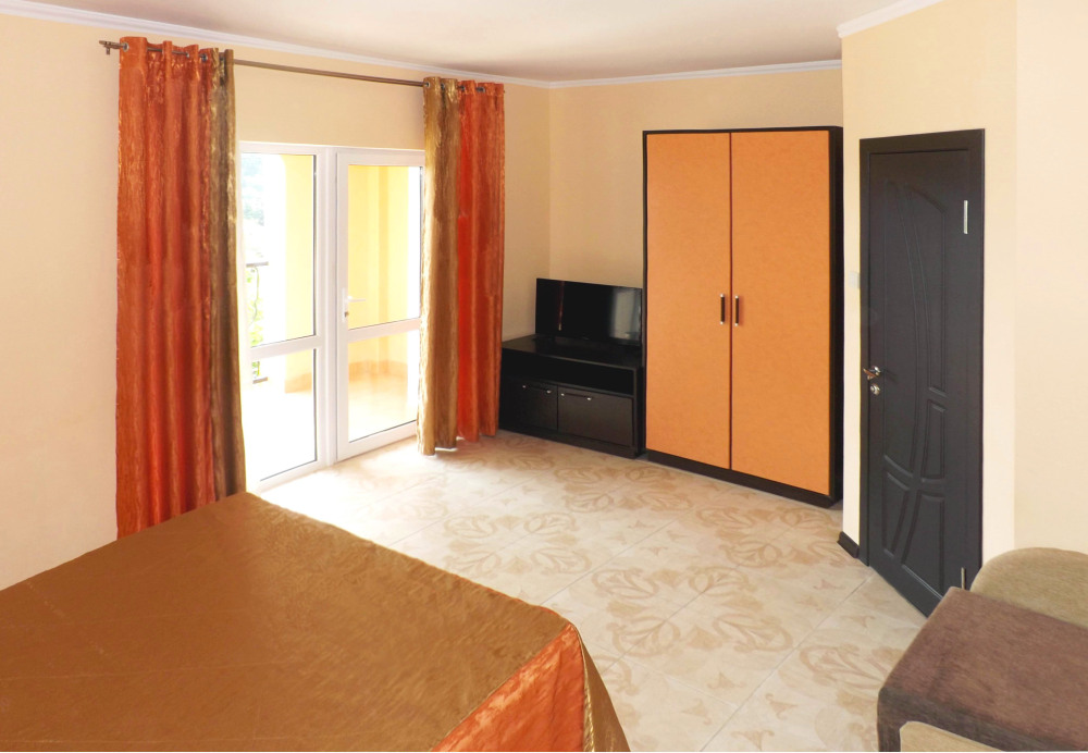 Данная категория номеров, с индивидуальным балконом, расположена на первом и втором этаже Виллы Васалия. Вид на море. Номера оборудованы: санузлом(фен в санузле), полотенцами, мини-холодильником, кондиционером, цифровым TV, чайником, зоной отдыха на балконе(стол+стулья). Есть возможность воспользоваться микроволновой печью, плитой, стиральной машиной и утюгом. Некоторые номера оборудованы 1,5 спальными диван-кроватями(дополнительное спальное место для одного взрослого, 1-2 детей).