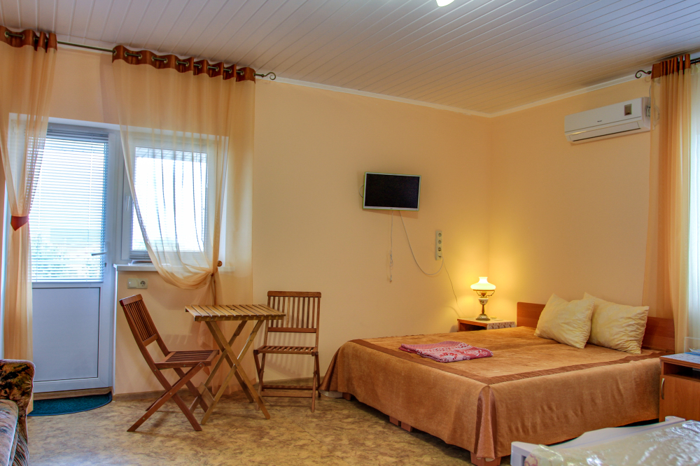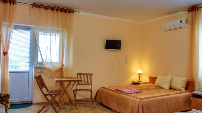Номера оформлены в классическом стиле и оснащены кондиционером, телевизором и холодильником.