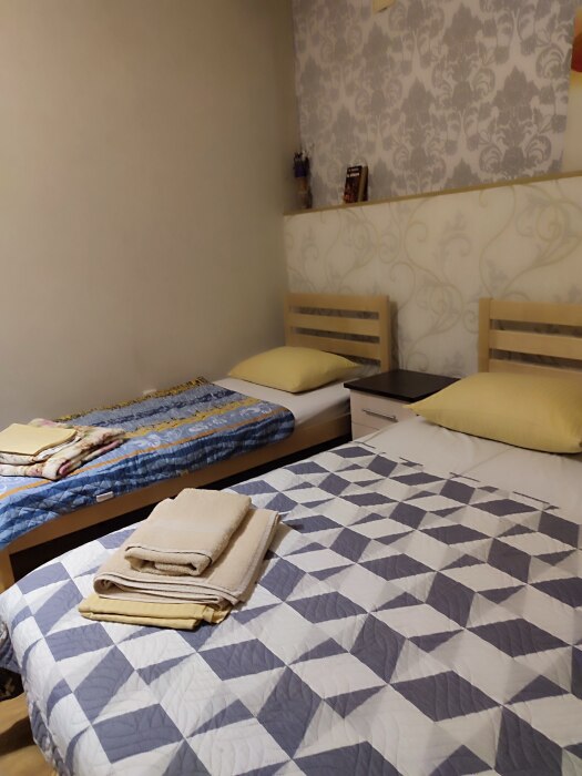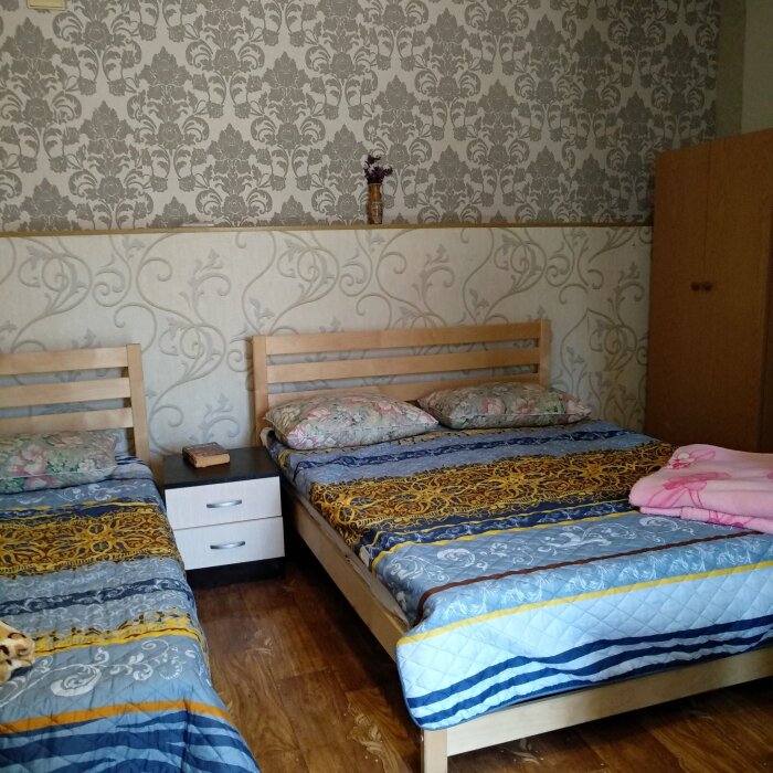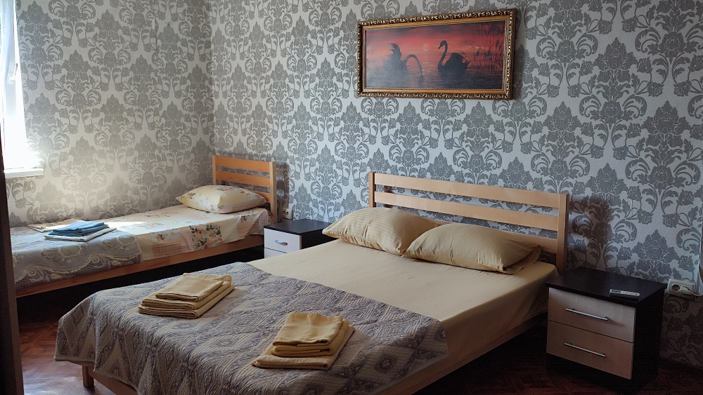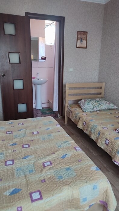 В каждой комнате свой санузел,двухспальная кровать и односпальная кровать,