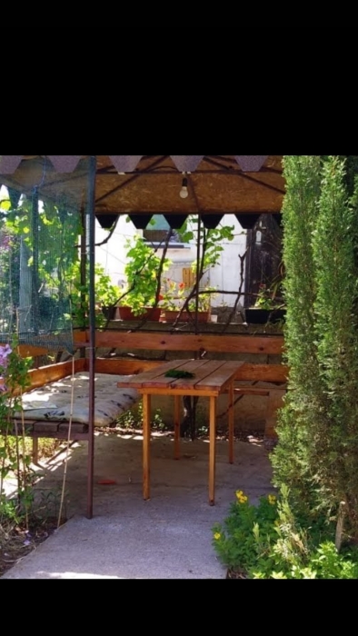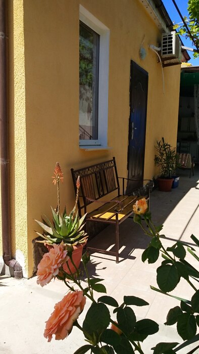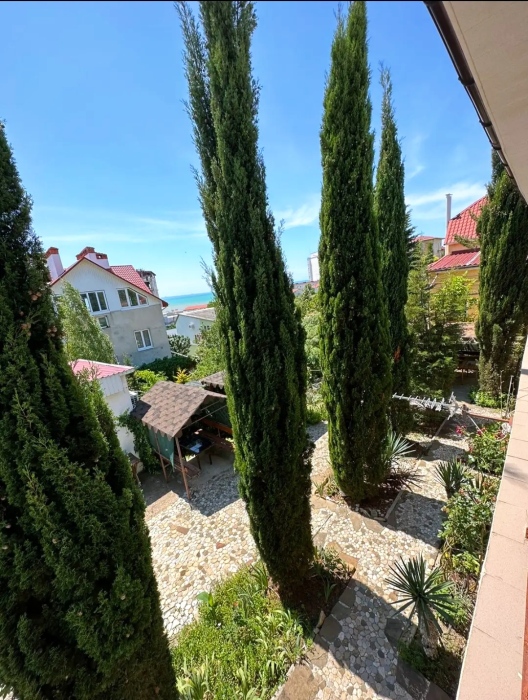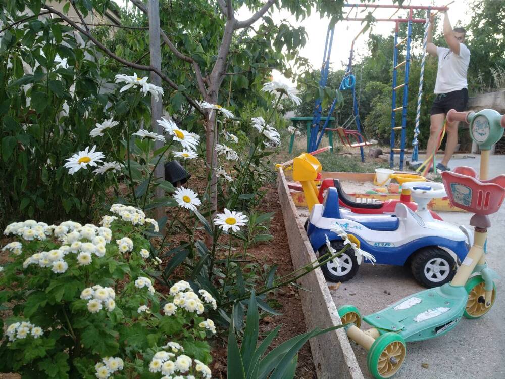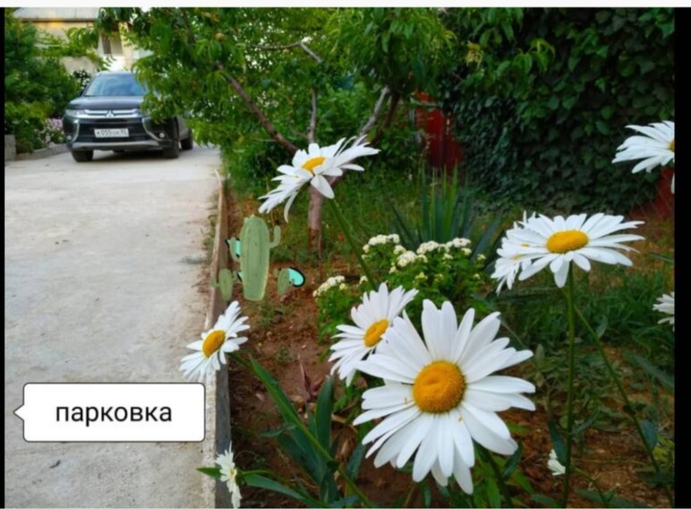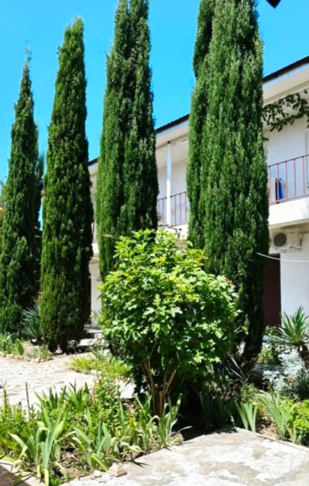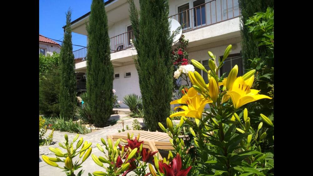 На территории несколько беседок для отдыха,пара восточных топчанов, качели для детей и взрослых,место для парковки автомобиля и зона барбекю.Нашим гостям нравится,что у нас есть возможность насладиться тишиной,без шумных компаний,среди цветов и целебных кипарисов.
