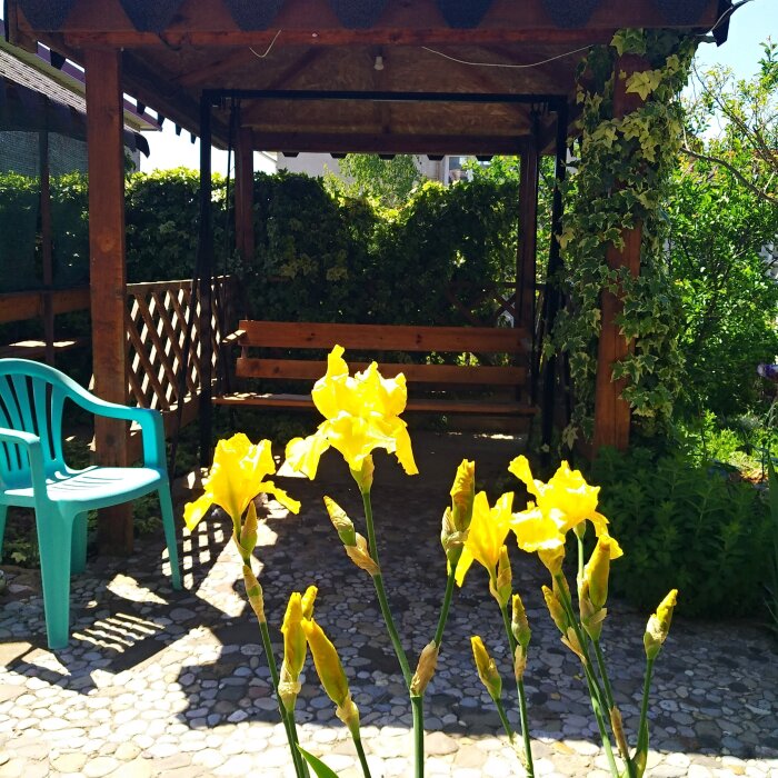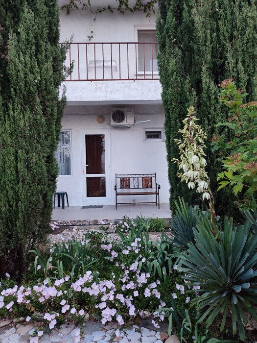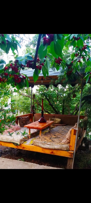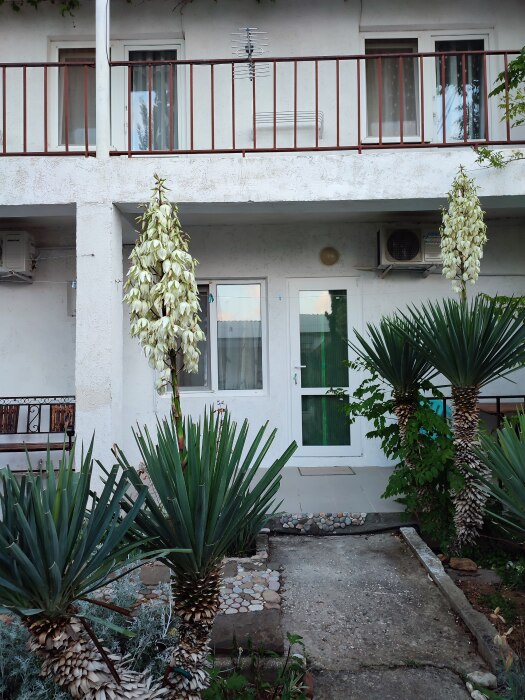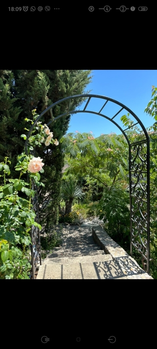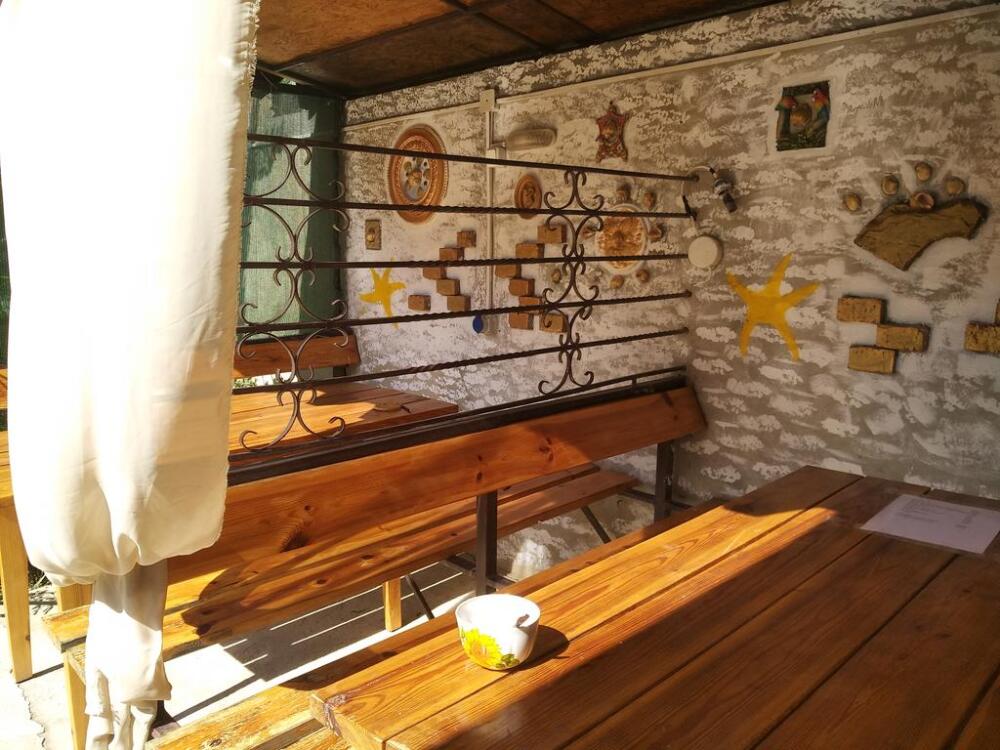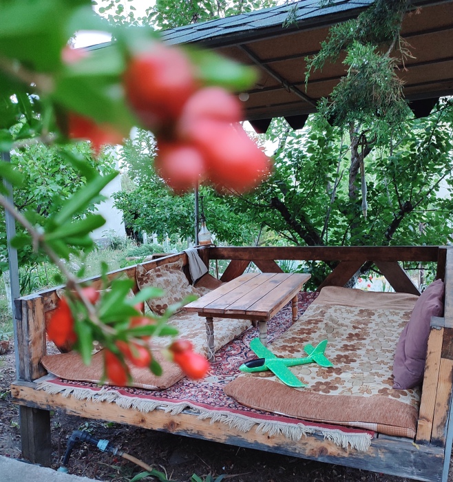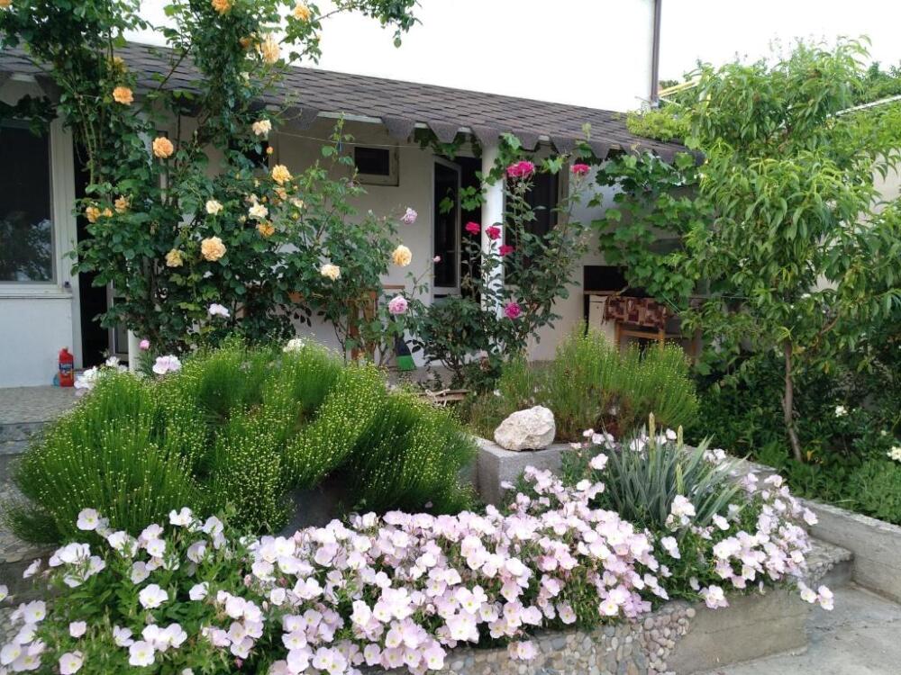На территории несколько беседок для отдыха,пара восточных топчанов, качели для детей и взрослых,место для парковки автомобиля и зона барбекю.Нашим гостям нравится,что у нас есть возможность насладиться тишиной,без шумных компаний,среди цветов и целебных кипарисов.