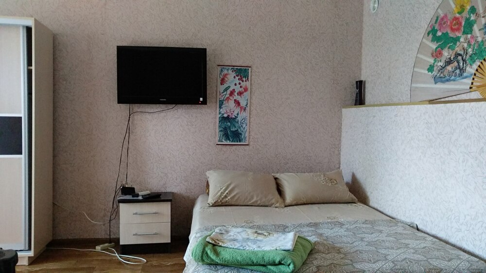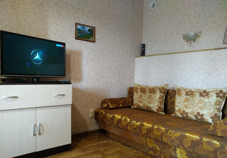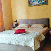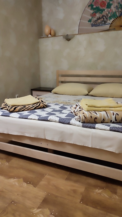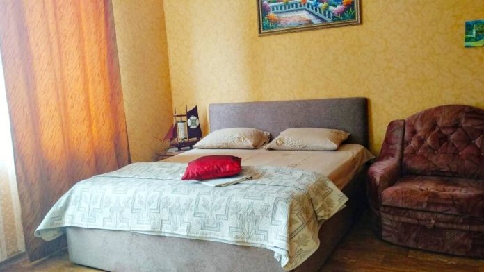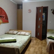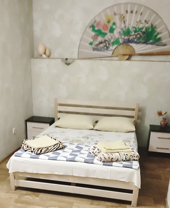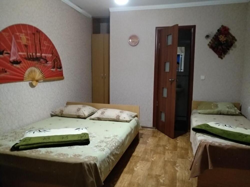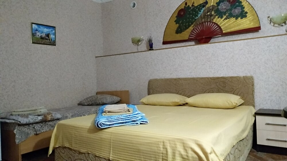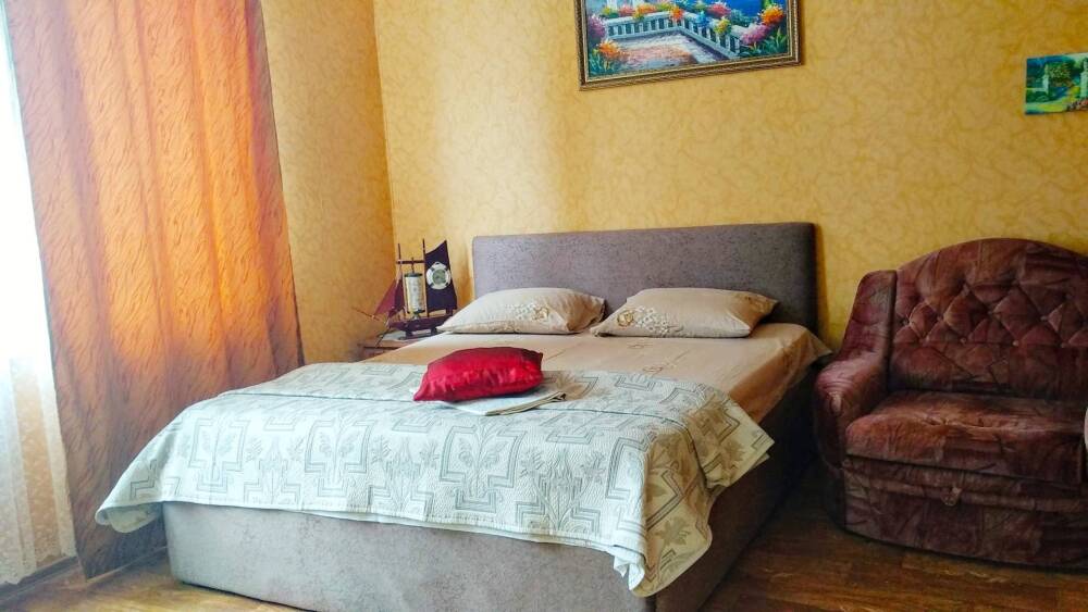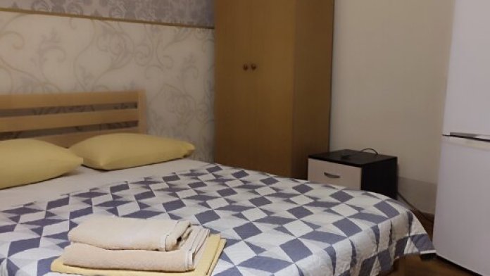 Номер состоит из двух отдельных комнат,с кондиционером в спальне,со своим балконом и своим кухонным уголком с газ.плитой., микроволновкой, мультиваркой.Рассчитан до 5 человек.