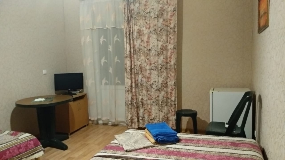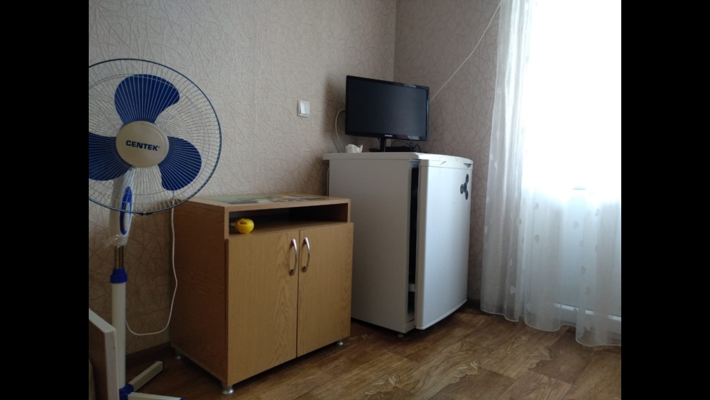 В номере есть свой санузел с душевой кабиной,две кровати,шкаф,тумбочки, телевизор, холодильник,вентилятор.