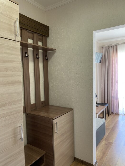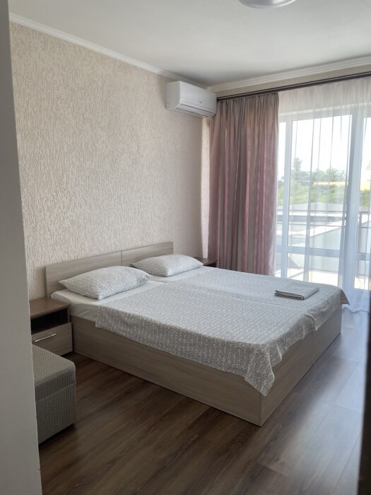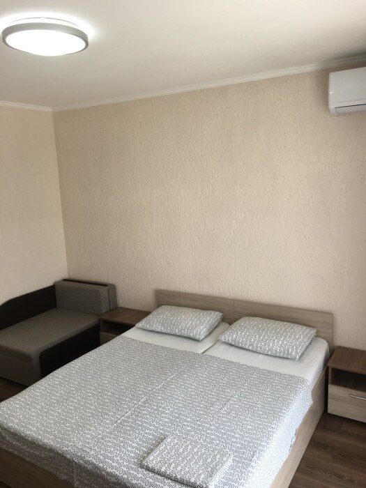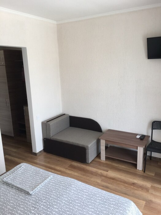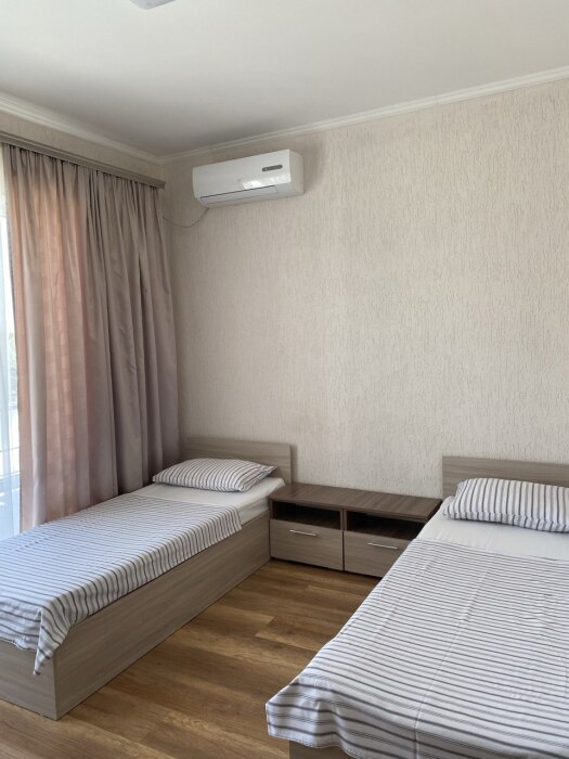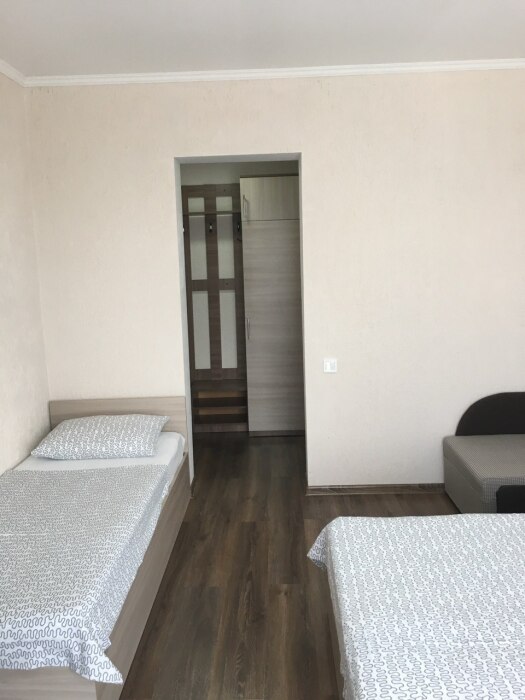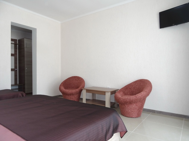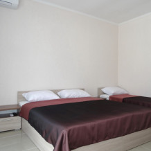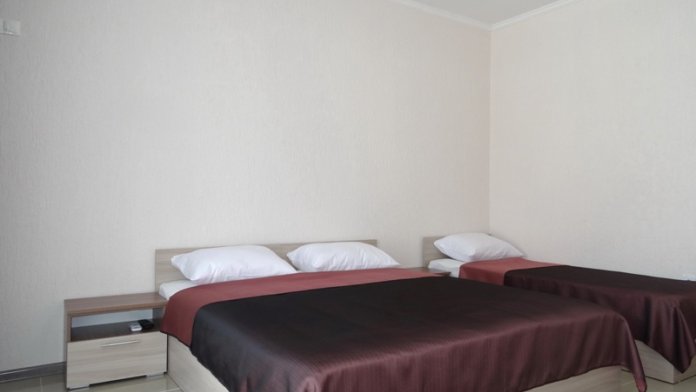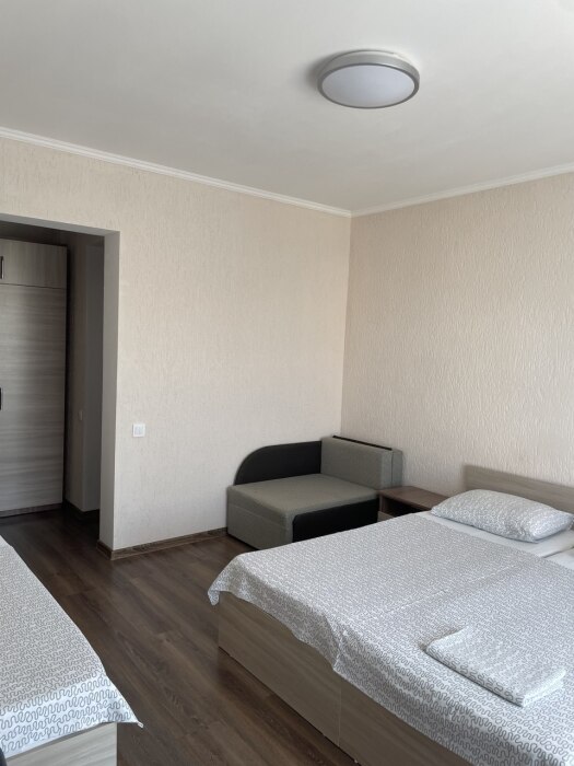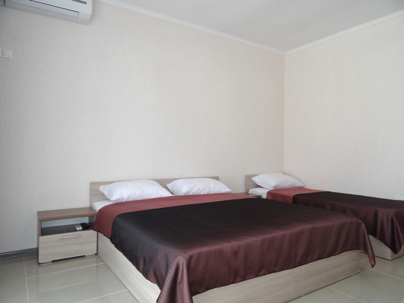 В номере односпальные кровати и двуспальные кровати, шкаф, прикроватные тумбочки, журнальный столик, интернет.