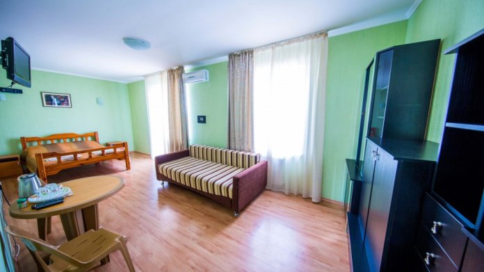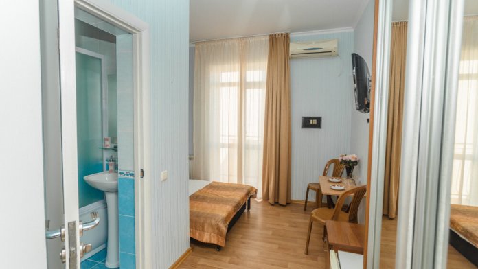 Номер на 2 этаже с балконом, на 1 этаже без балкона (сушилка для белья за окном ). Ежедневная влажная уборка номера производится с применением дезинфицирующего средства «DESO», включает дезинфекцию всех контактных поверхностей (пульт управления от телевизора и кондиционера, дверные ручки, стирку наматрасников, обработка тканевых поверхностей парогенератором), проветривание номера и обеззараживание воздуха рециркулятором.