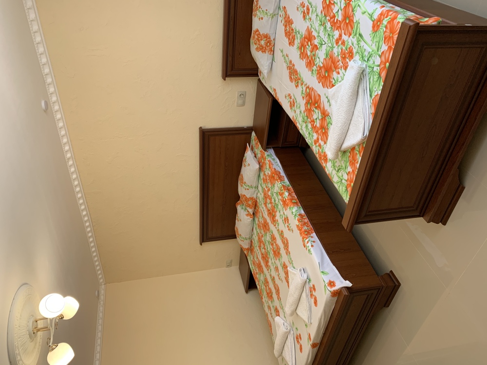 - Постельное бельё, комплект полотенец (лицевое и банное), туалетные принадлежности (жидкое мыло, бумага)