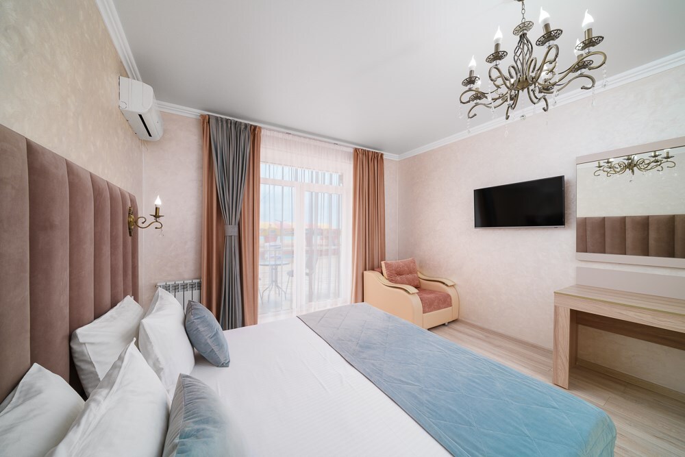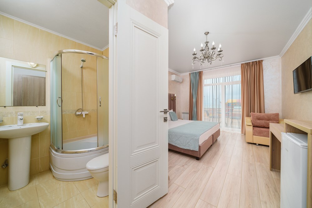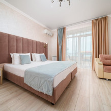 Номер данной категории расположен на 2 этаже в “Основном” корпусе, ближайшем к пляжу. Корпус сертифицирован по категории 3 звезды. В номере этой категории имеется балкон с видом на пляж и море.