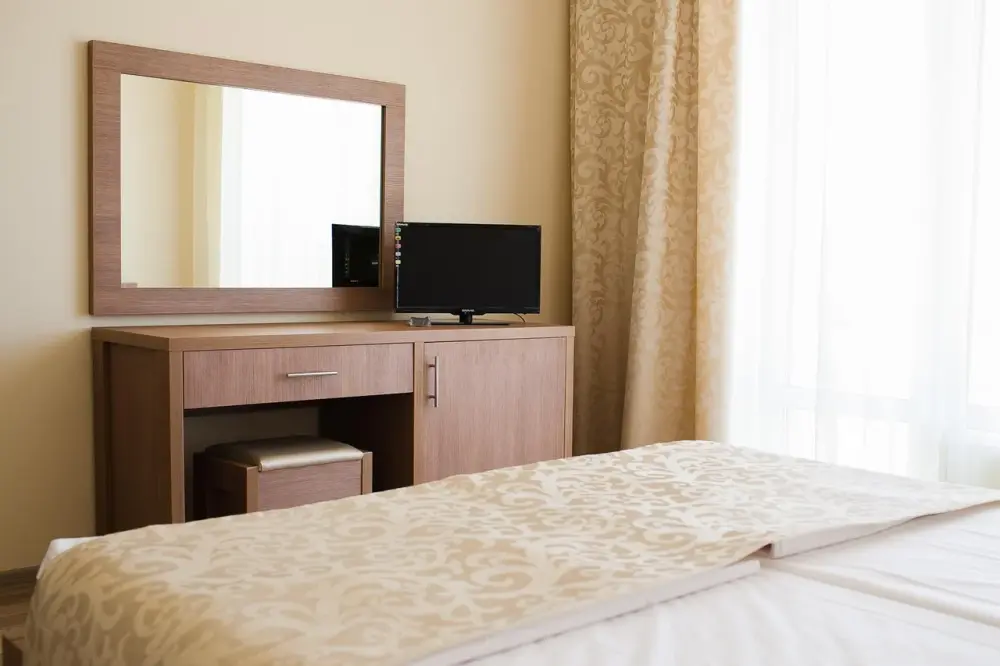 В номерах: холодильник (мини-бар), спутниковое телевидение, телевизионные каналы, WI-FI интернет, кондиционер, сейф, картины, шкаф-купе с зеркалами. Паркетное покрытие.