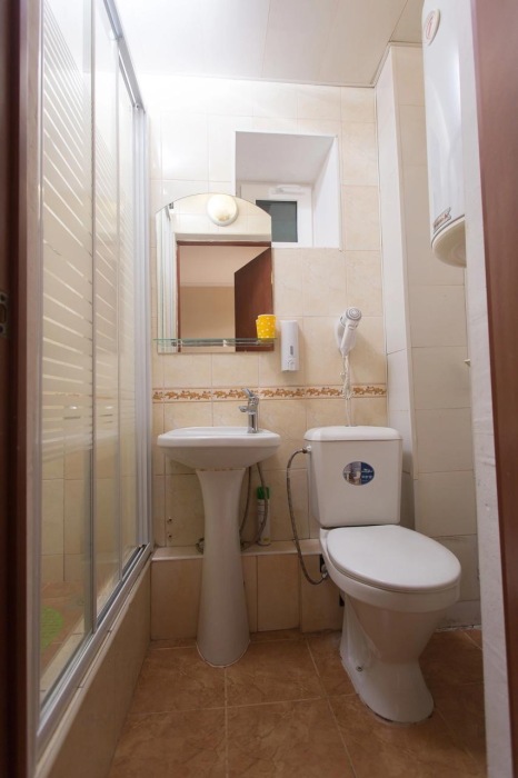 В доме 15 номеров со всеми удобствами. Все номера с отдельным входом, большая терраса, у каждого свой столик, есть свой огороженный дворик, где можно пожарить шашлычок. В номерах: санузел, душевая, телевизор, кондиционер, холодильник, чайник.В номер с детьми по необходимости выдаём мультиварку для приготовления пищи и всю необходимую посуду, вай фай бесплатно, стиральная машина (150 рублей загрузка),до 5кг.