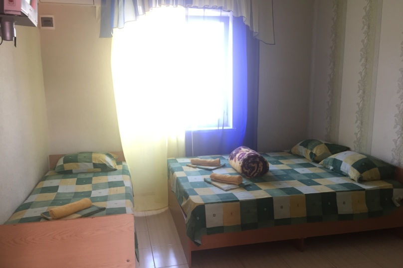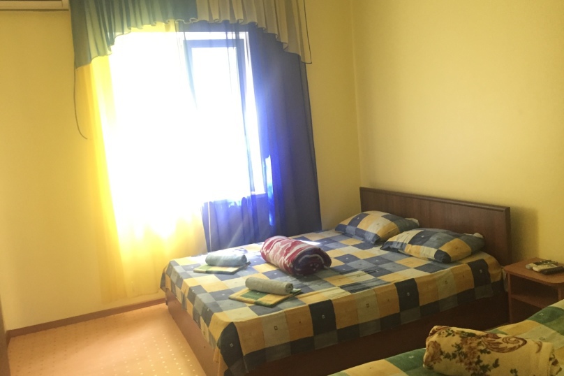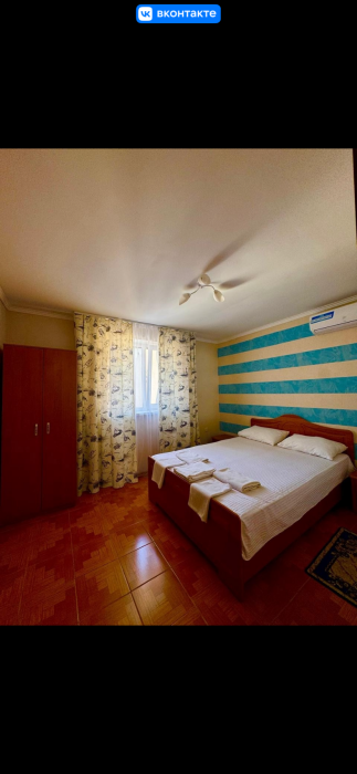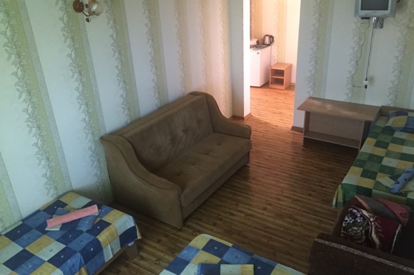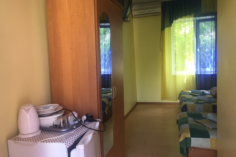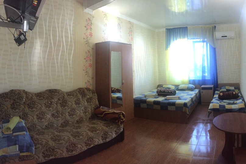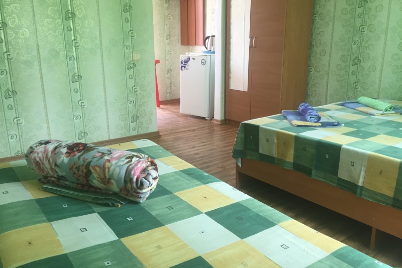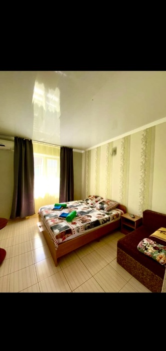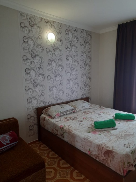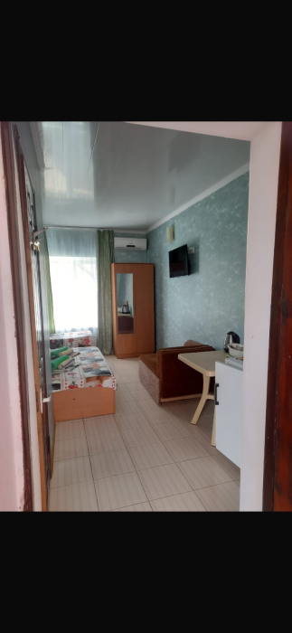 номера двух комнатные,до моря 200 метров. В номере санузел,душевая,телевизор,кондиционер,холодильник,чайник,микроволновая печь,шкаф,вай фай, необходимоя посуда,возле номера на террасе у каждого свой столик,во дворе большая беседка со столиками