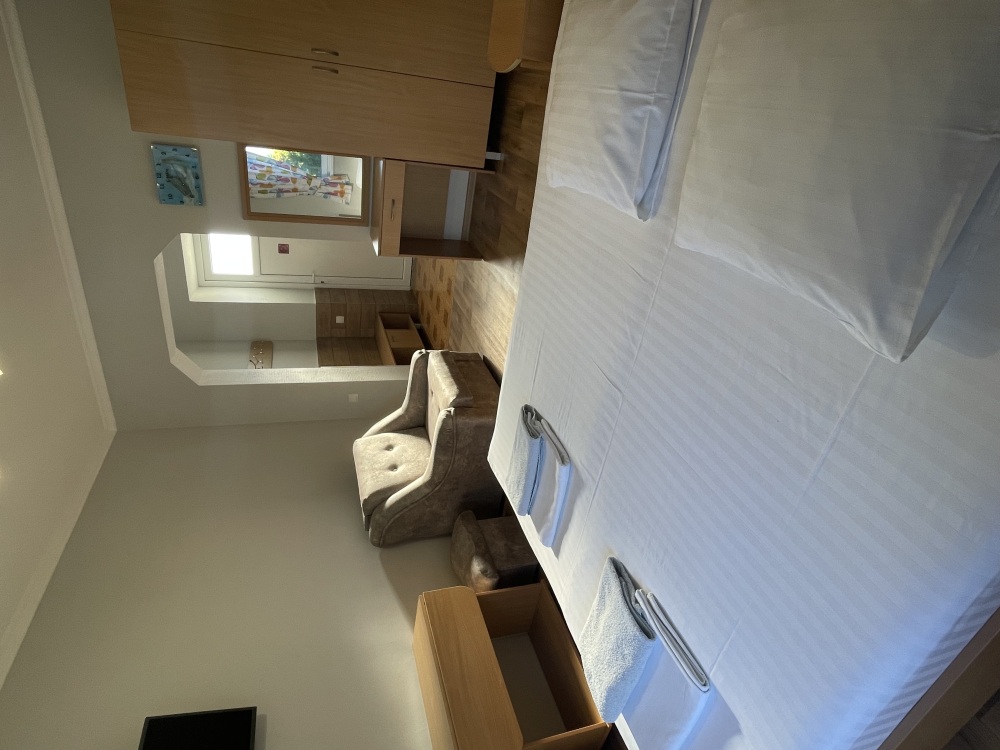 Две одинаковые комнаты со сдвинутыми односпальными кроватями и с раскладными креслами. Телевизор в каждой комнате. Есть холодильник, чайник и СВЧ печь.