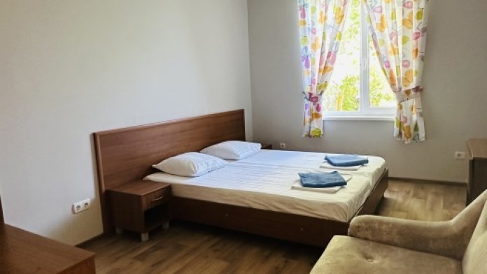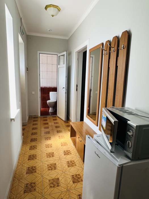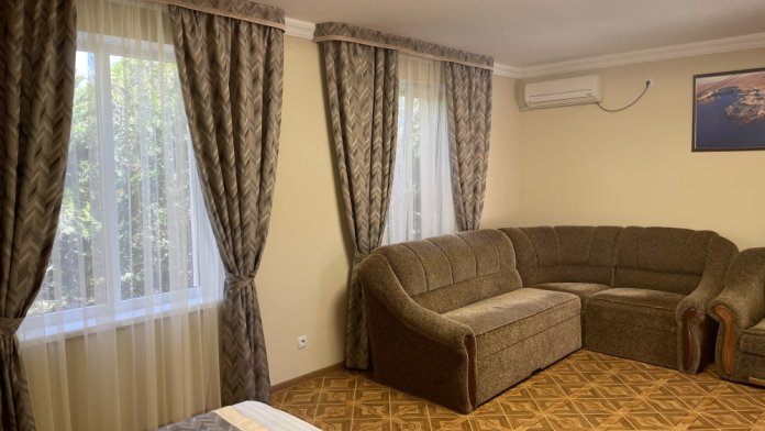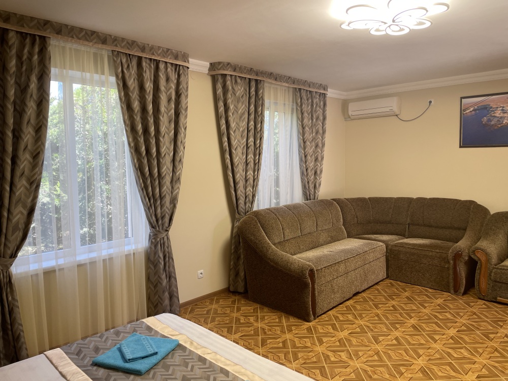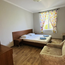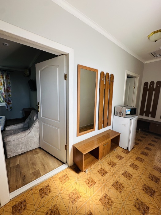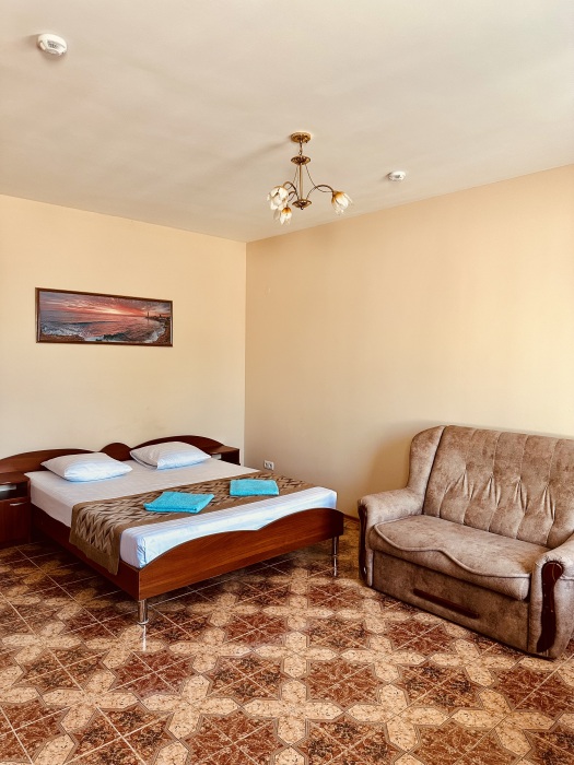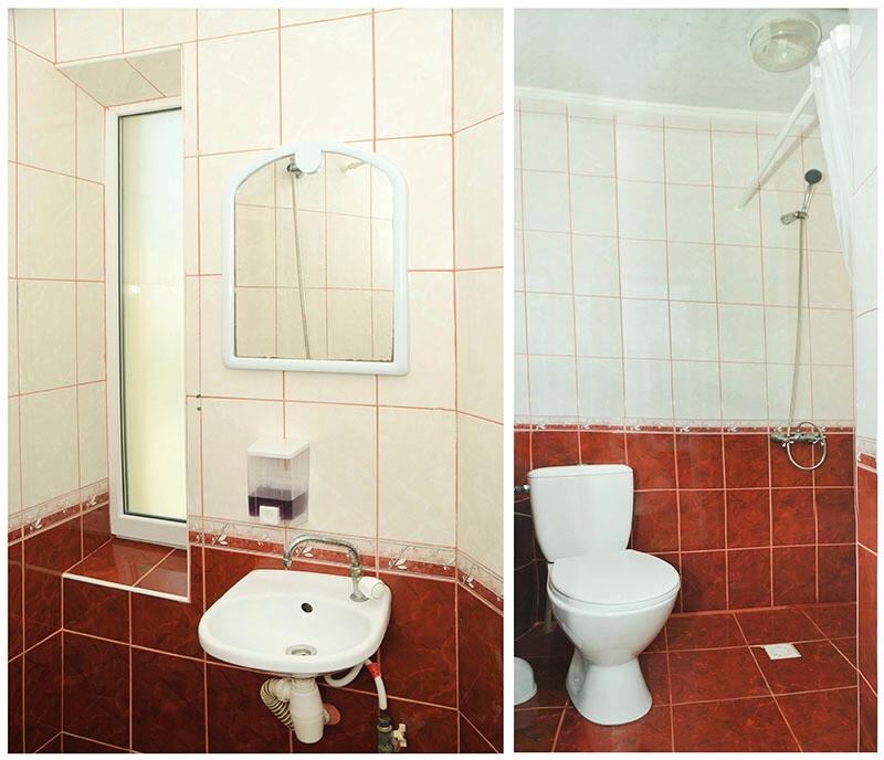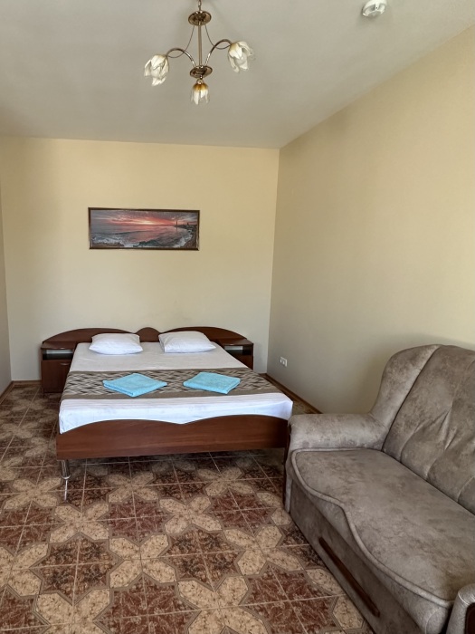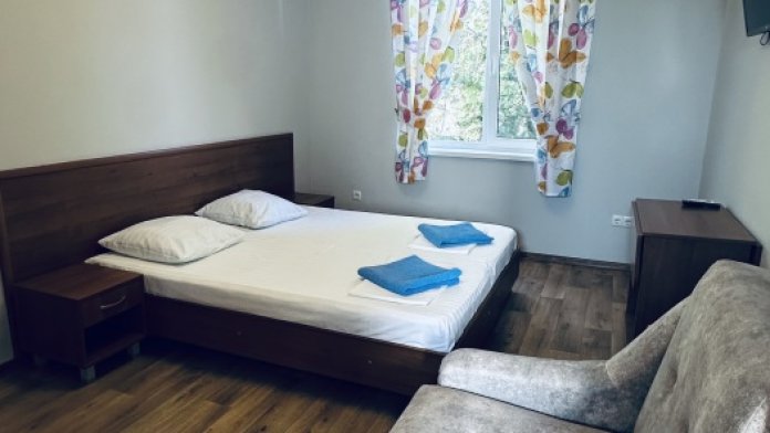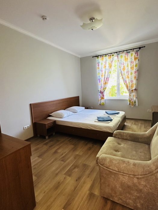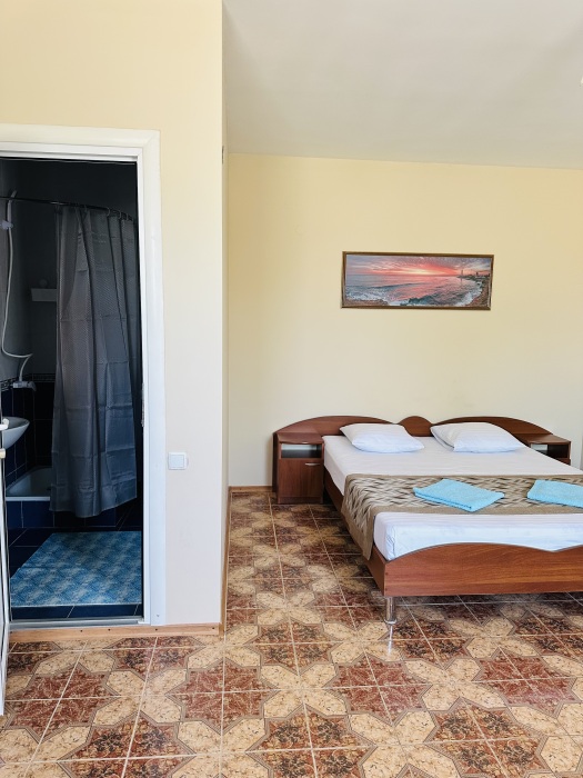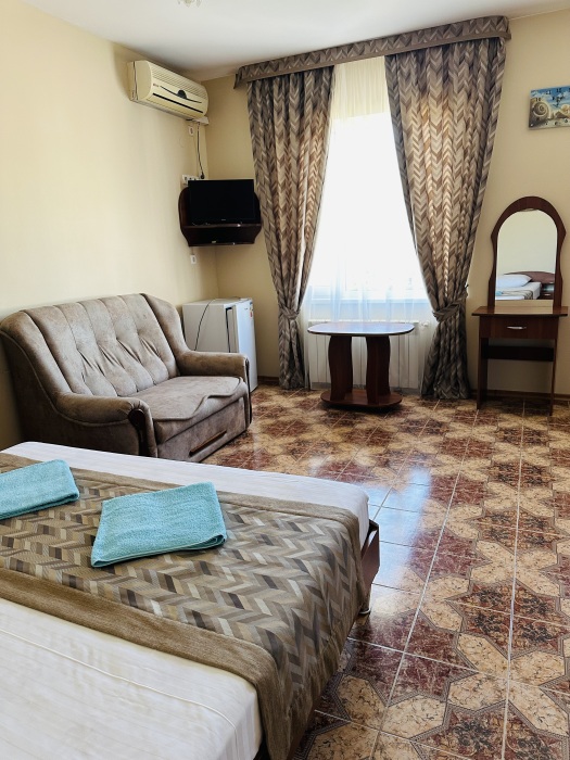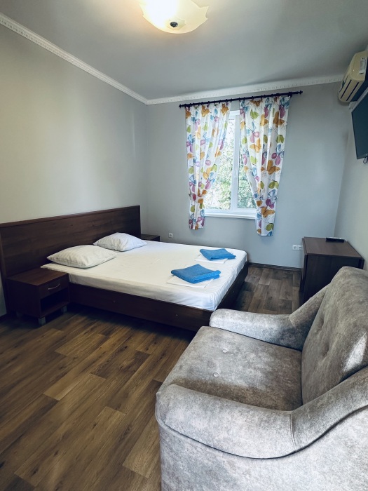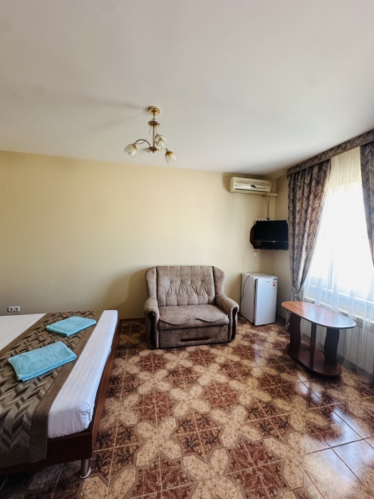 Однокомнатный номер с удобствами (две односпальные кровати, 1 раскладное кресло, тв, кондиционер, санузел, душ, холодильник)