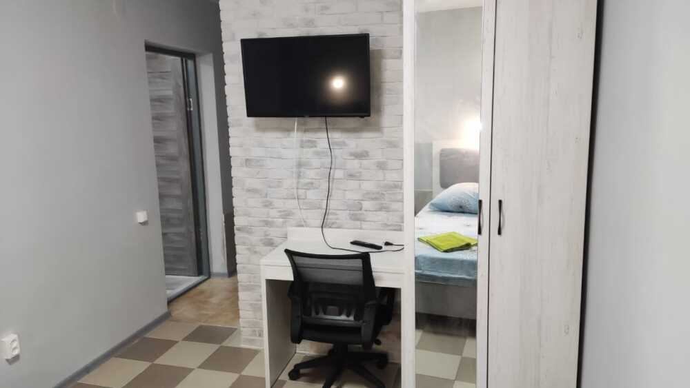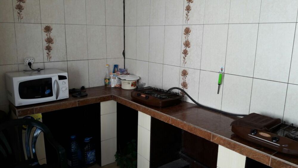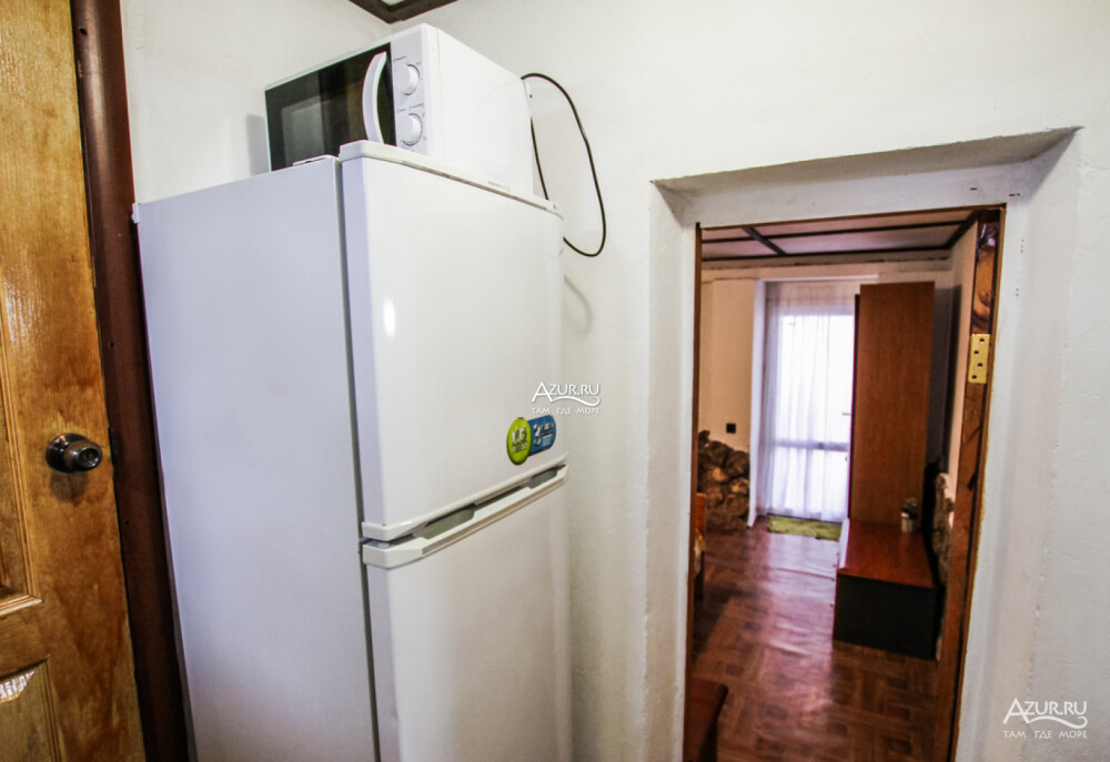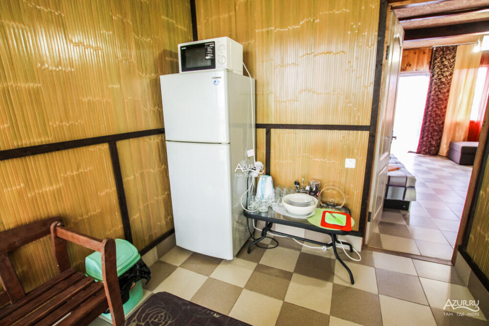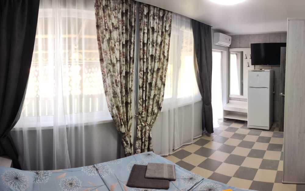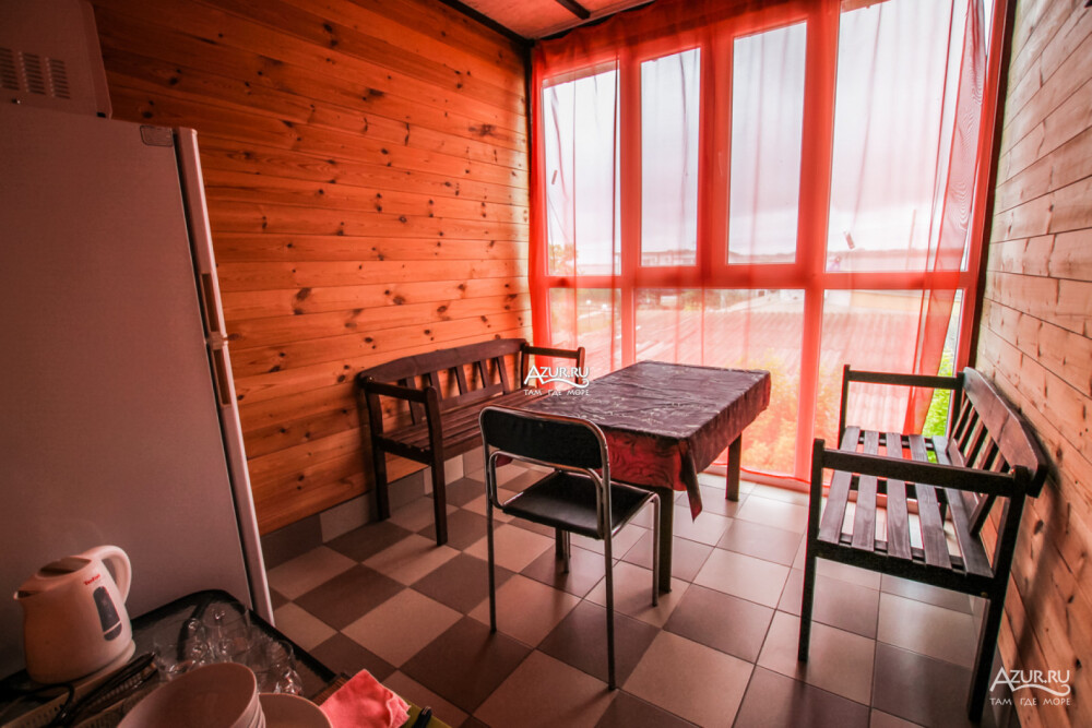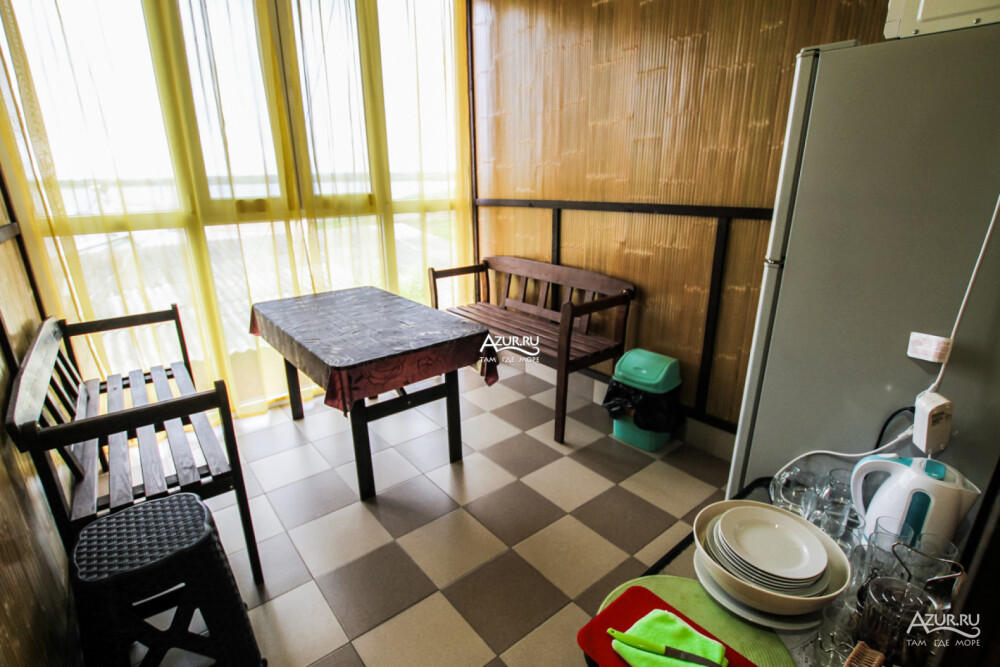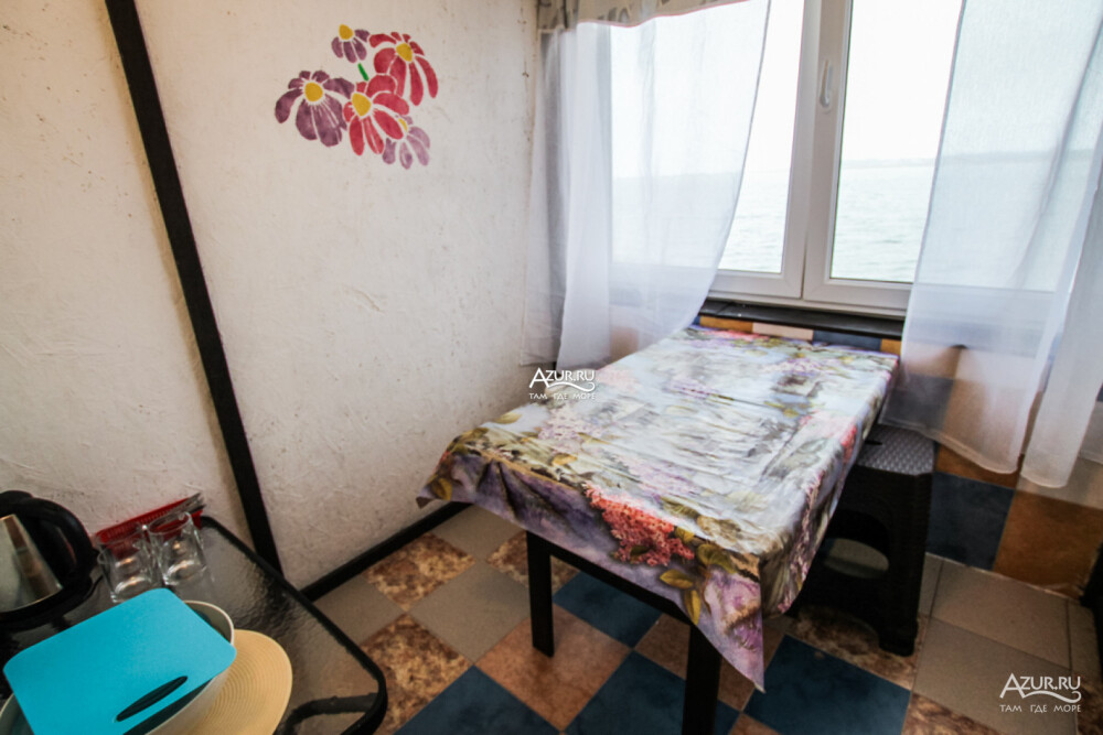 Номер находится на втором этаже, комнаты смежные. В номере имеется балкон с видом на лиман и море, с обеденной зоной (стол, два диванчика, холодильник, микроволновая печь, чайник, посуда).