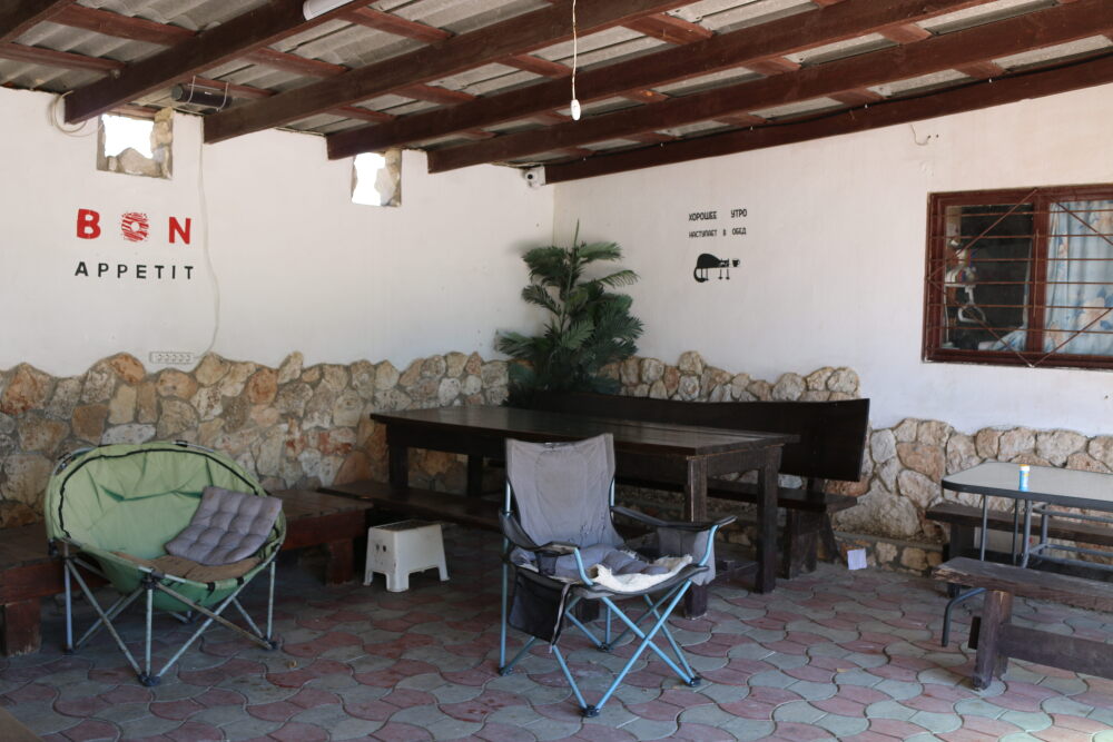 Рядом с номером есть персональная веранда с лежаком, пластиковыми креслами и столом.