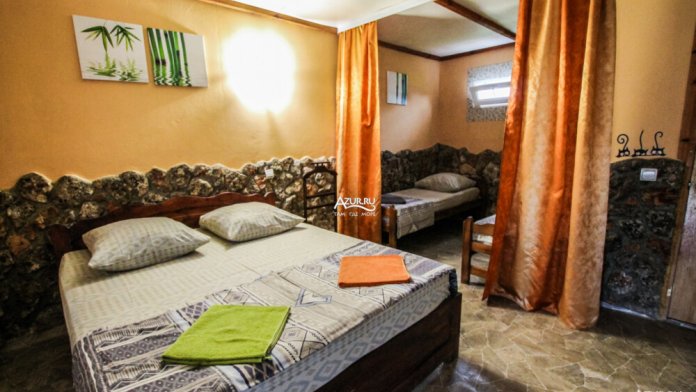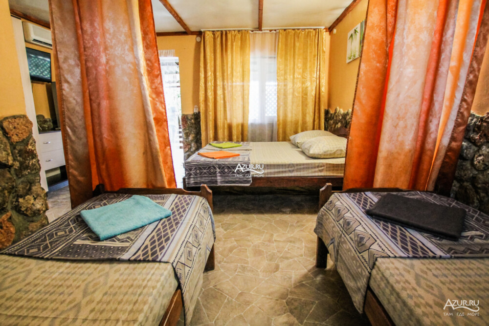 Номер находится на первом этаже. Комнаты раздельные. У каждой комнаты отдельный вход. Рядом с номером есть персональная веранда (на 2 комнаты) с лежаками, большим обеденным столом. В номере 2 телевизора ,кондиционер и вентилятор.