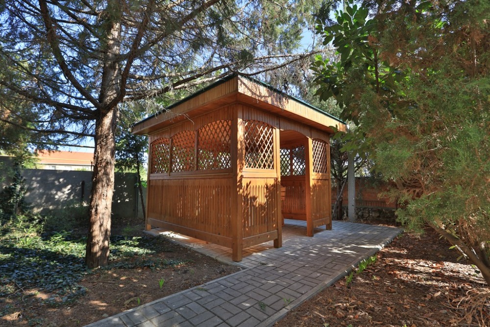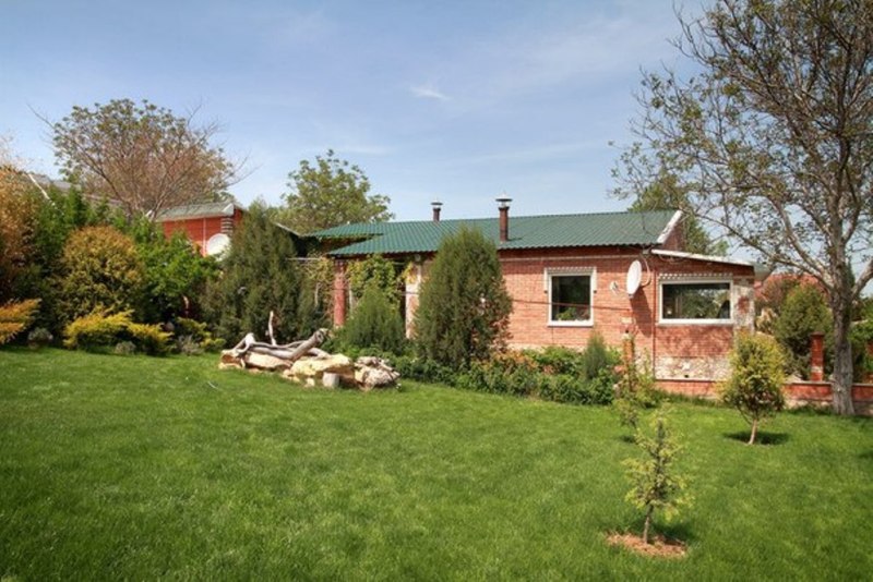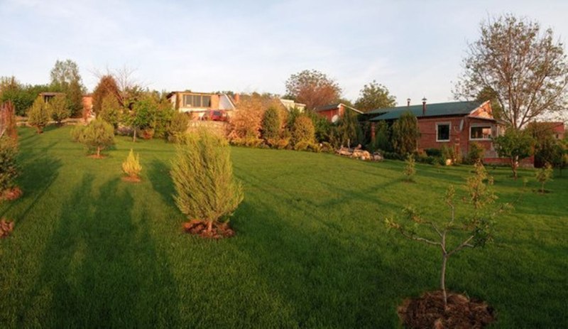 Закрытая территория двора 30 соток засажена взрослыми деревьями крымского можжевельника, баня на дровах, мангал, сеновал, качели, настольный теннис.