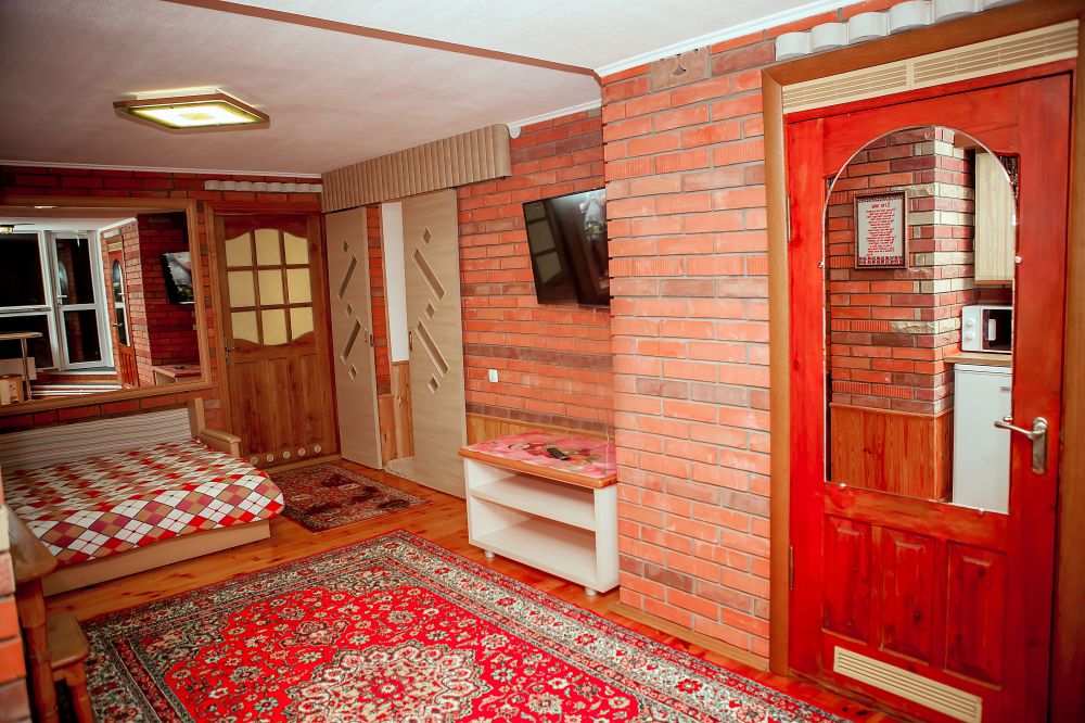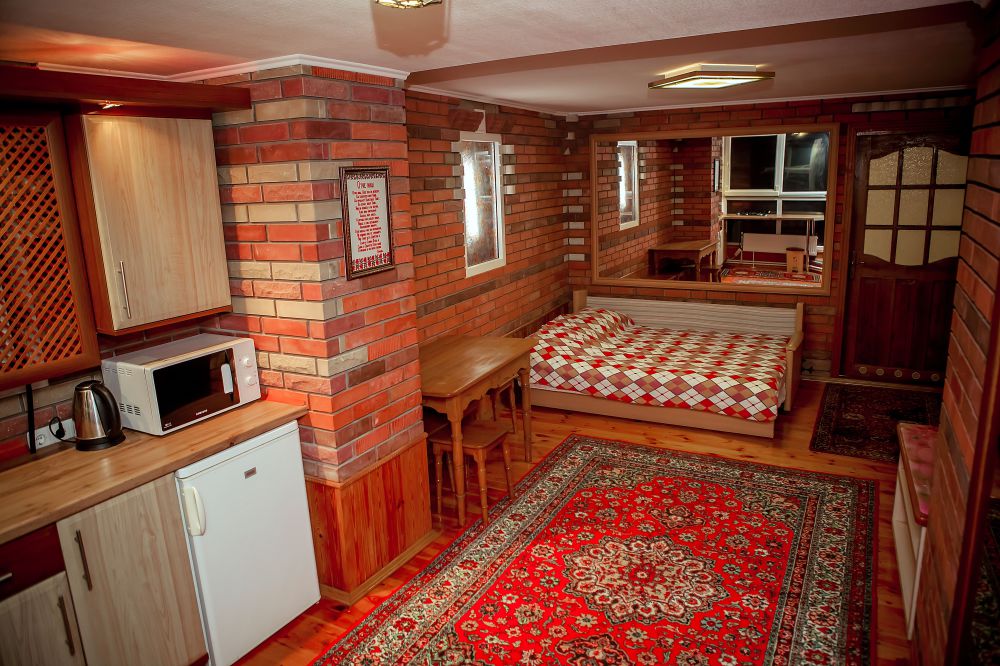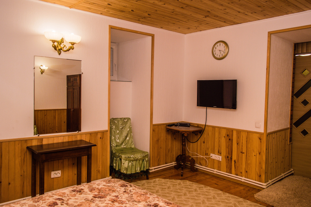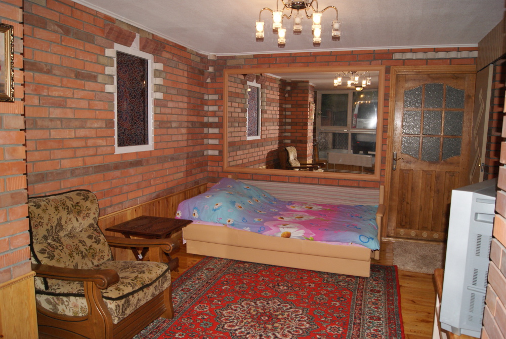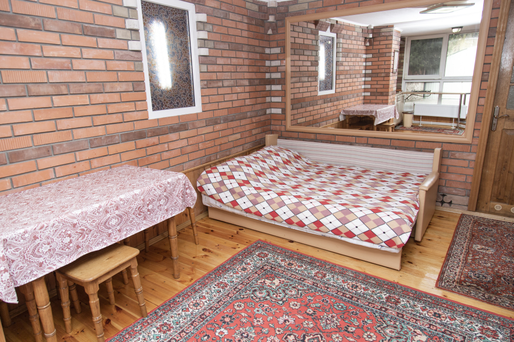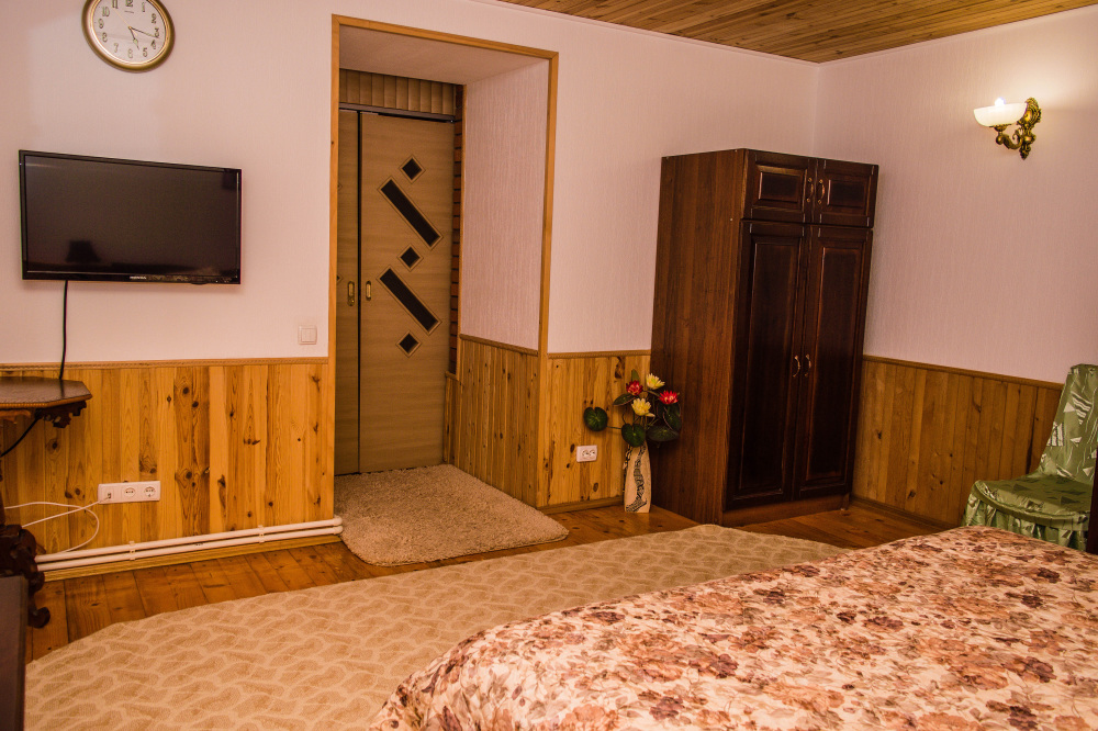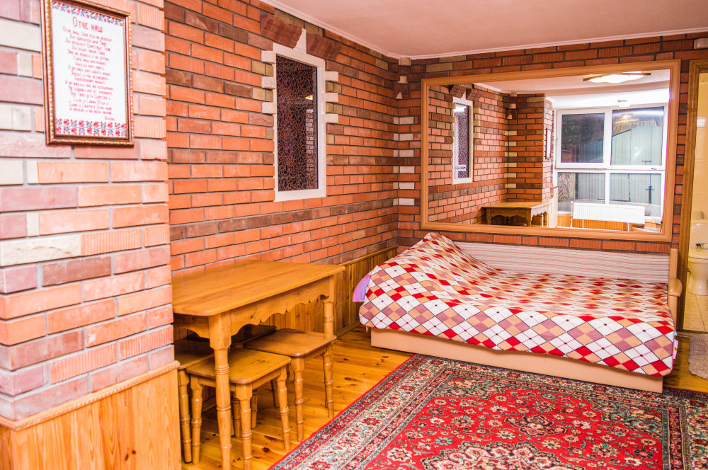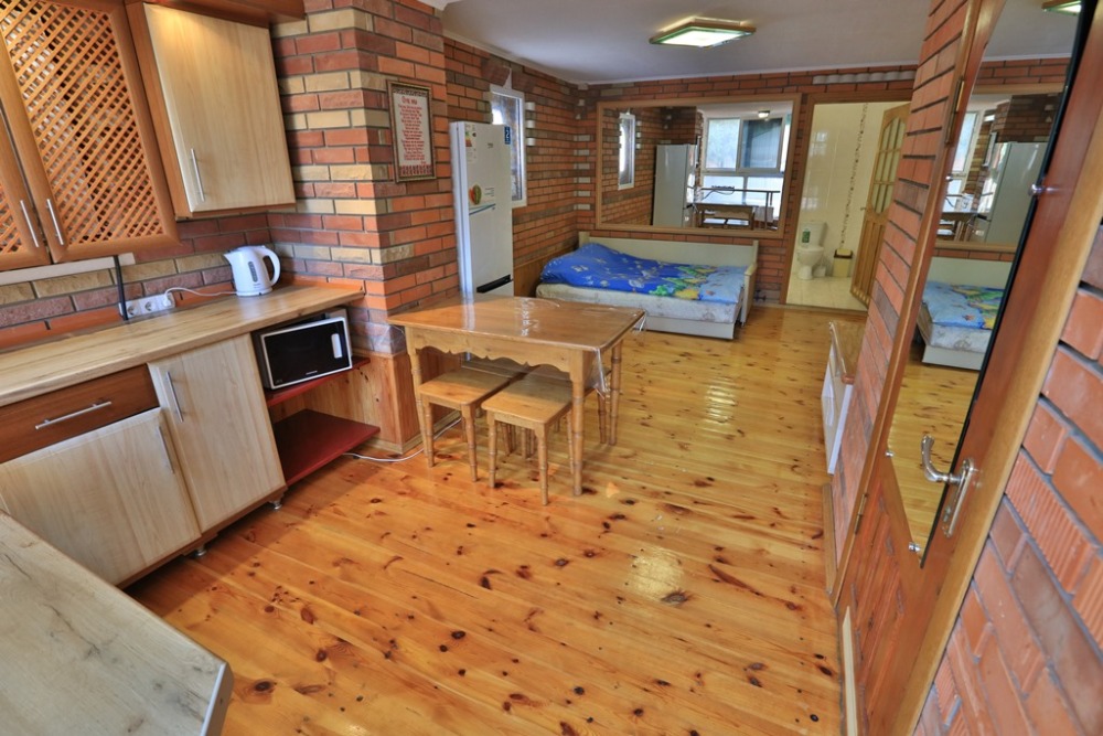 У нас на территории есть отдельный дом со своим двором и парковкой «Нижний дом»: спальня с 2х спальной кроватью и 2х ярусной детской кроватью, санузел, большая проходная комната с 2х спальным диваном и зоной кухни. Общая площадь дома 50 м2, максимальная вместимость 4 взрослых и 2 детей.