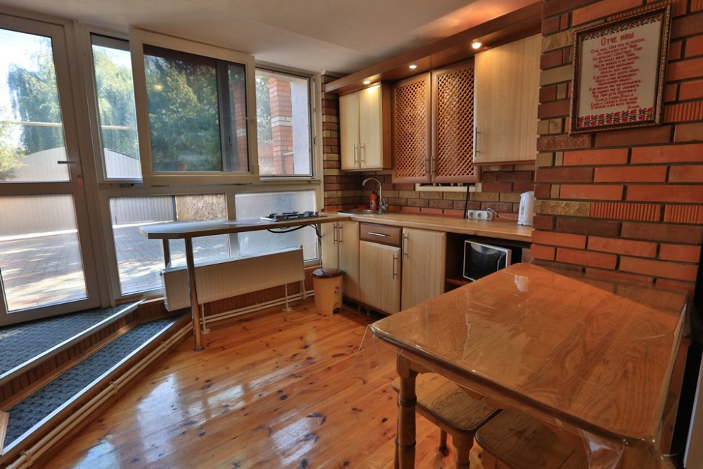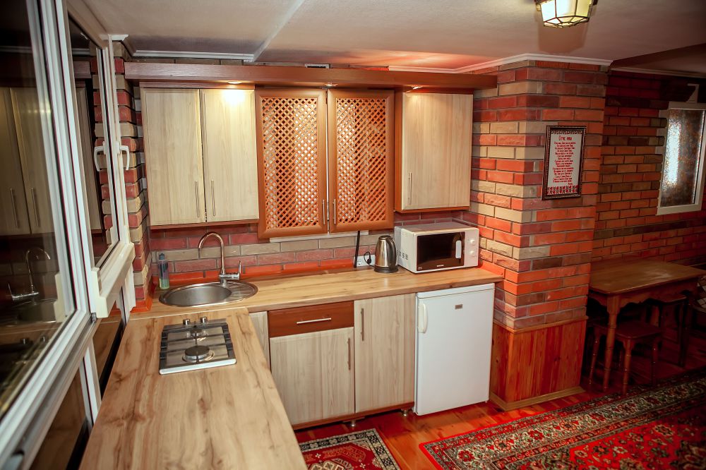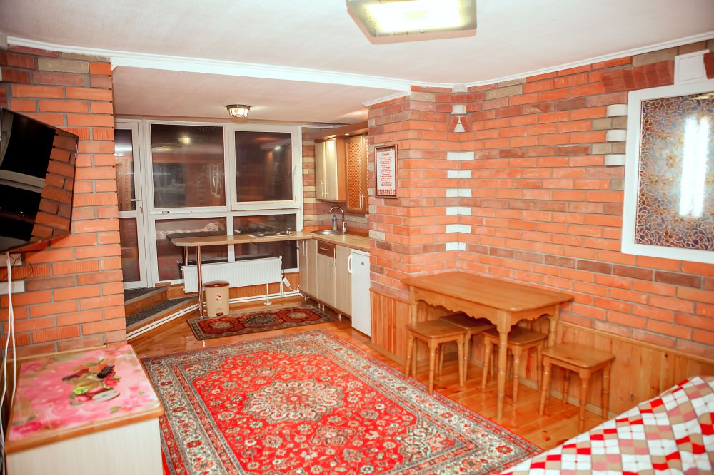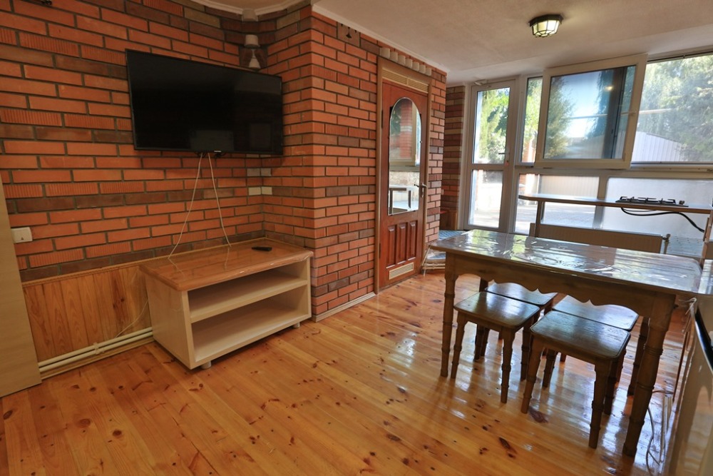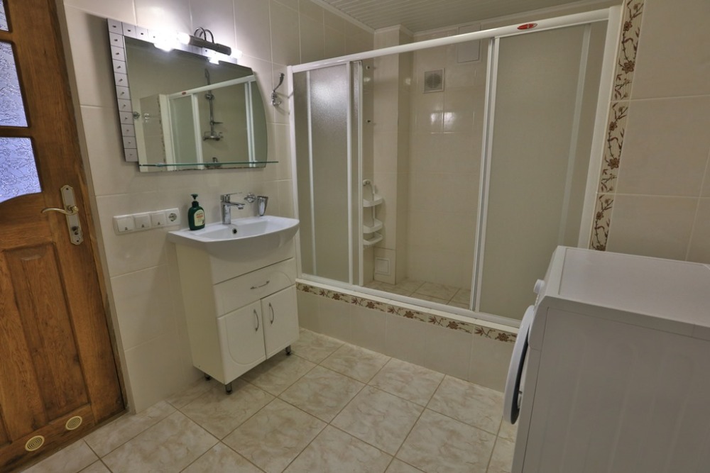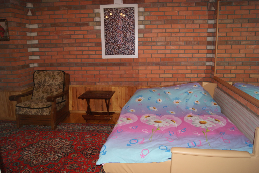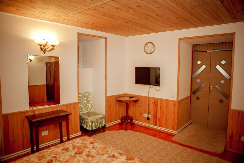 У нас на территории есть отдельный дом со своим двором и парковкой «Нижний дом»: спальня с 2х спальной кроватью и 2х ярусной детской кроватью, санузел, большая проходная комната с 2х спальным диваном и зоной кухни. Общая площадь дома 50 м2, максимальная вместимость 4 взрослых и 2 детей.