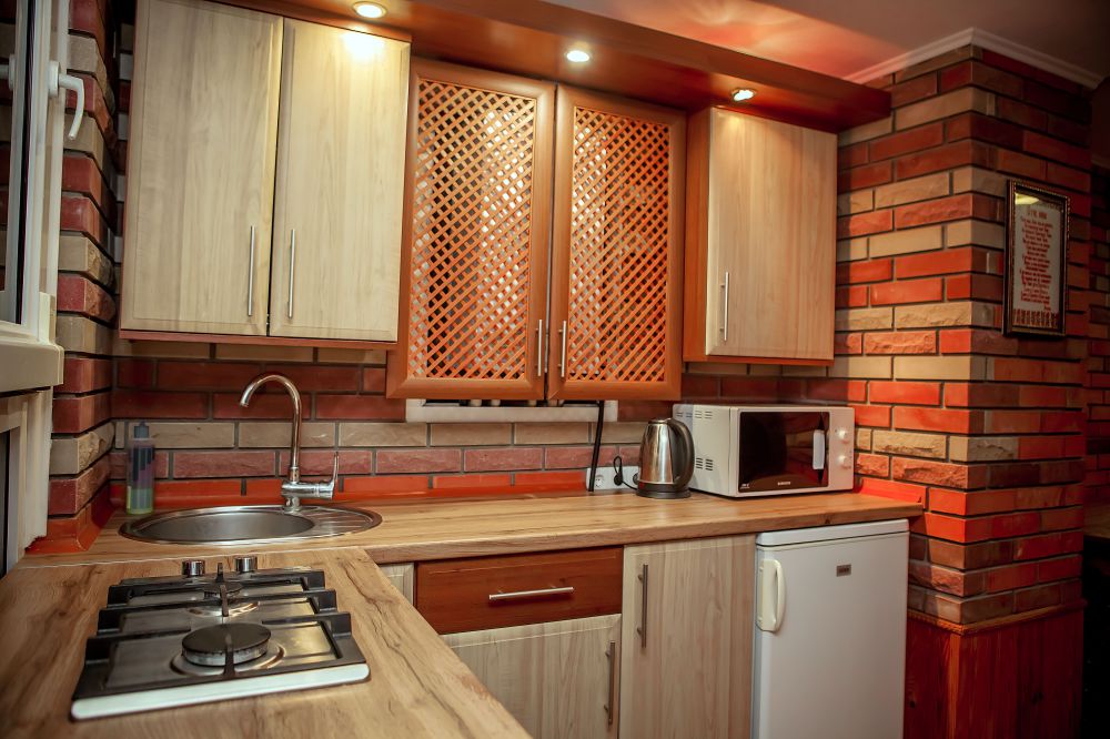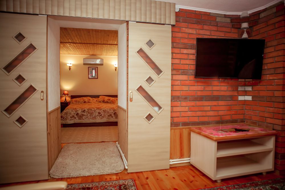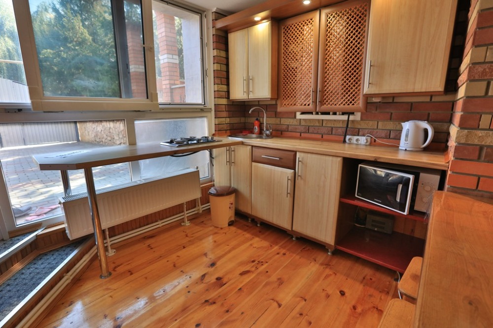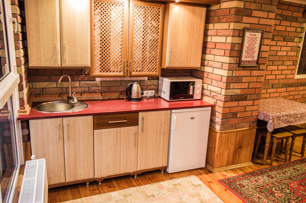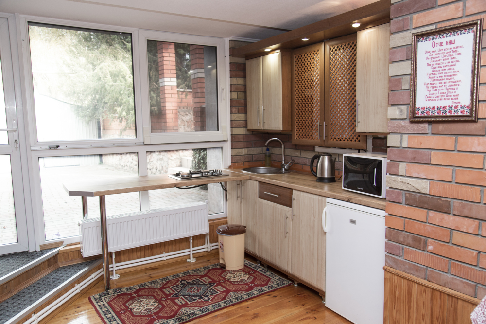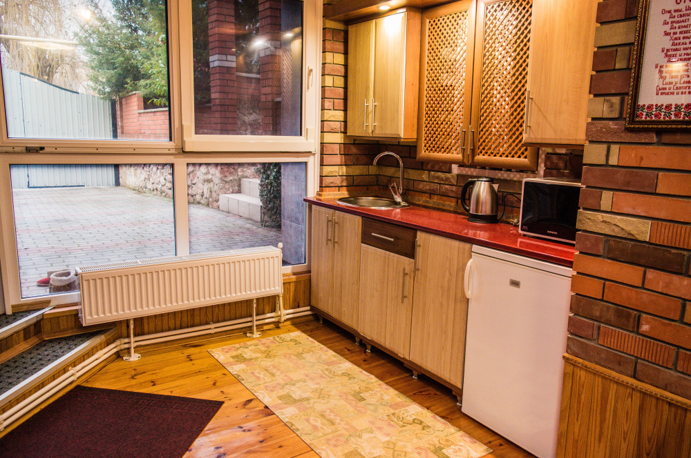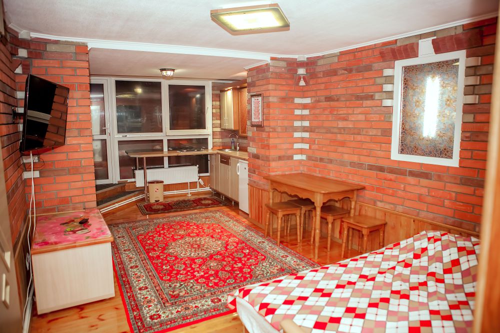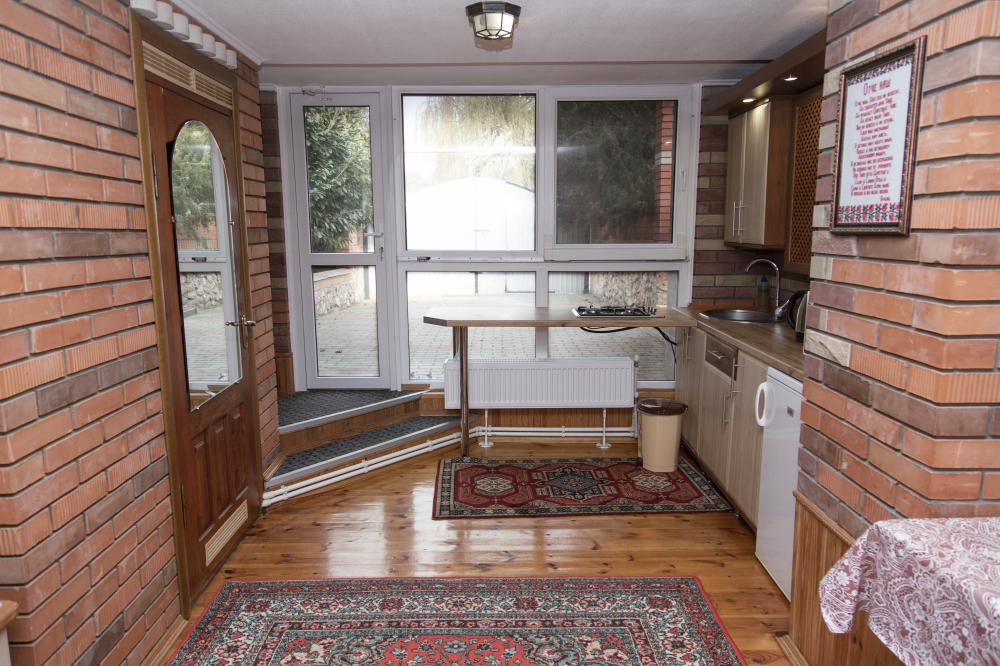 У нас на территории есть отдельный дом со своим двором и парковкой «Нижний дом»: спальня с 2х спальной кроватью и 2х ярусной детской кроватью, санузел, большая проходная комната с 2х спальным диваном и зоной кухни. Общая площадь дома 50 м2, максимальная вместимость 4 взрослых и 2 детей.