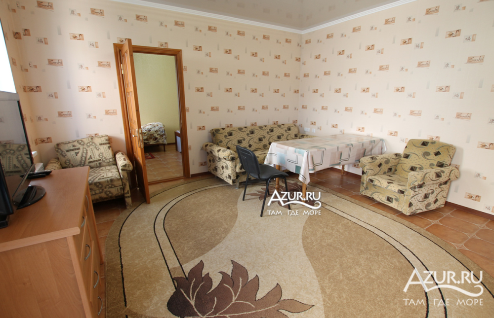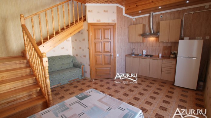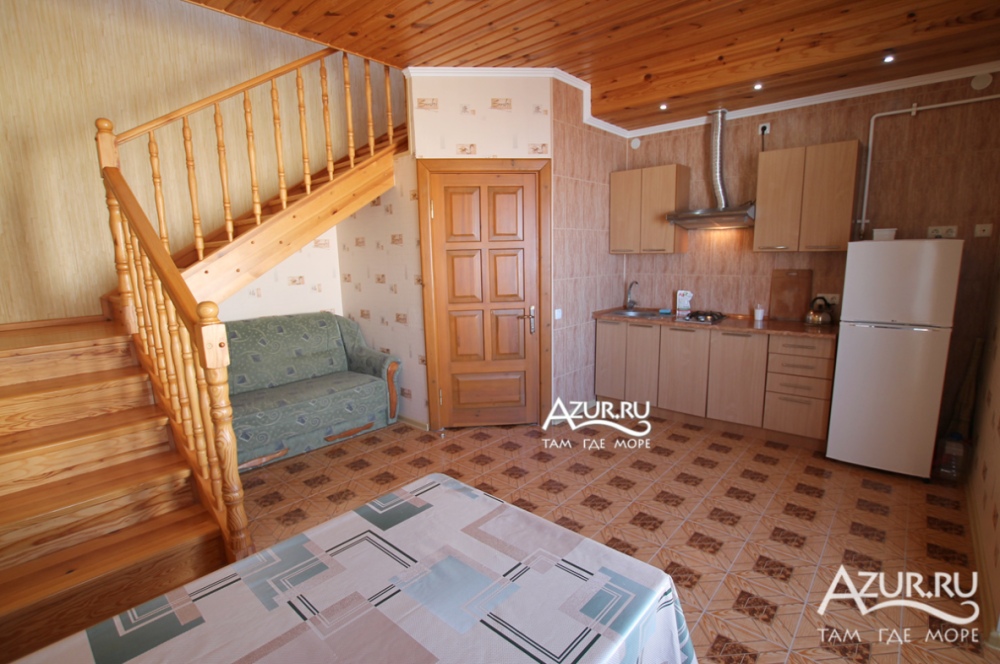Дом состоит из четырех квартир, два из которых в двух уровнях (один с видом на залив, второй - с видом на море). Комплектация каждого из апартаментов: необходимая мебель, полностью оборудованная кухня (в наличии газовая плита, микроволновая печь, посуда и т.д.), стиральная машина, сплит-системы, спутниковое телевидение, беспроводной интернет, санузел с душем.