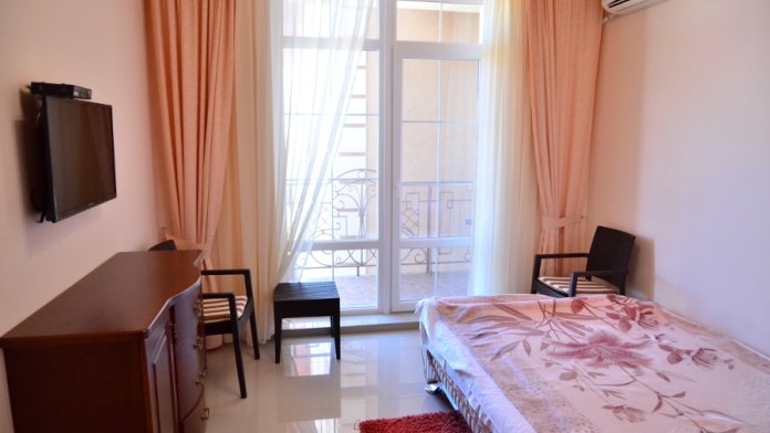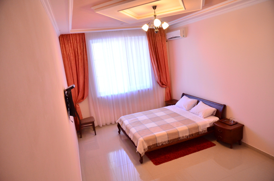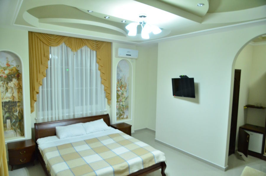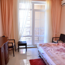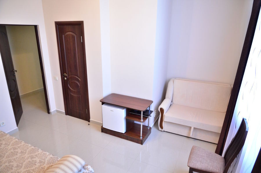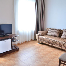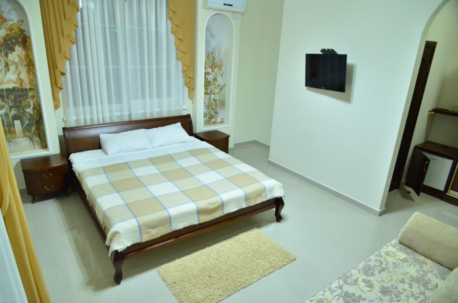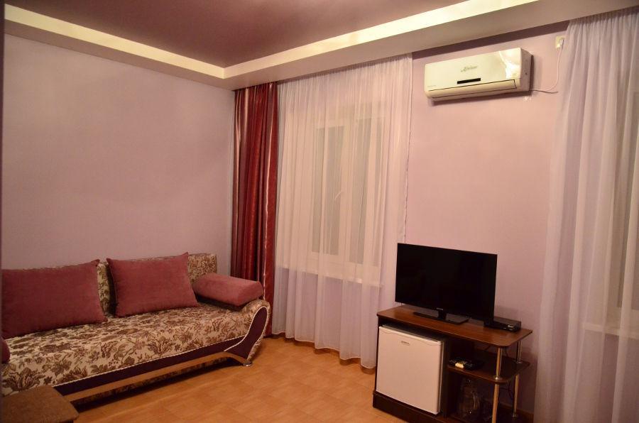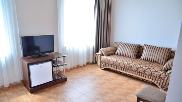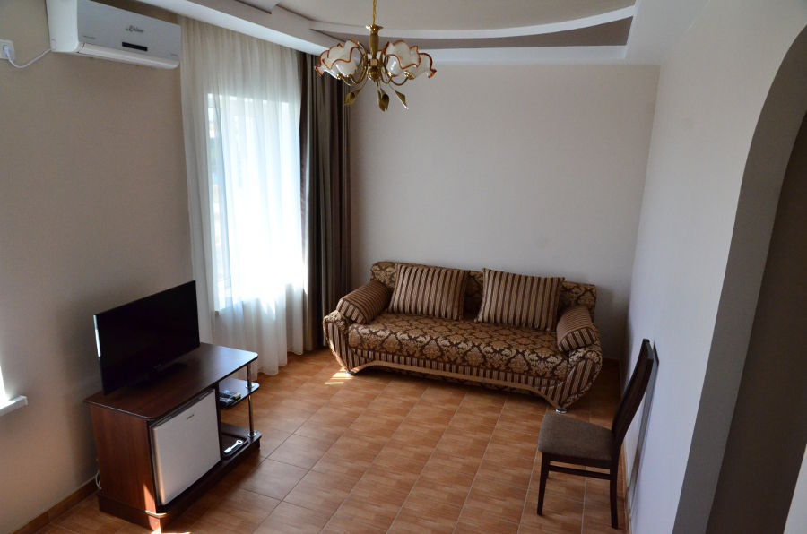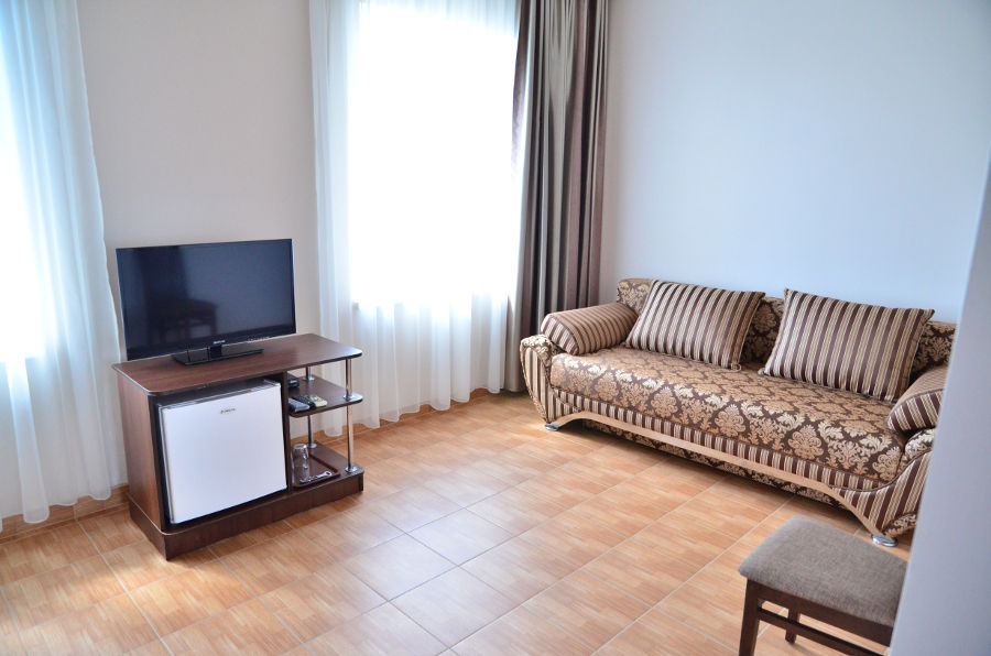 Каждый номер гармонично сочетает стиль и комфорт. Гостевые комнаты оснащены удобной современной мебелью, системой кондиционирования воздуха, телевизором, холодильником, Номер категории двухкомнатный Люкс состоит из спальни (с двуспальной кроватью с прикроватными тумбами, шкафом-купе) и гостевой комнаты с мягкой мебелью. Санузел: душ, туалет, раковина.