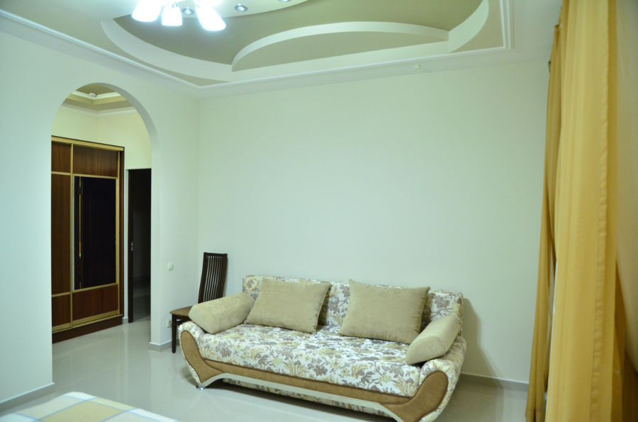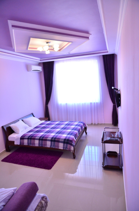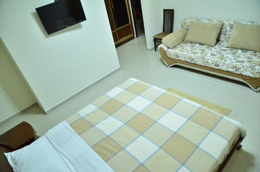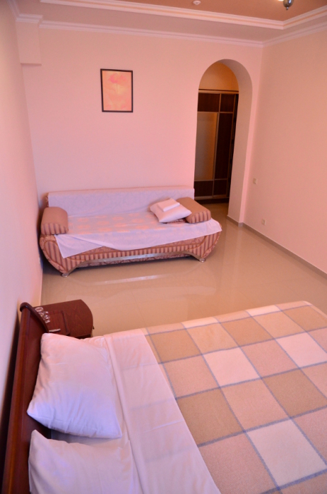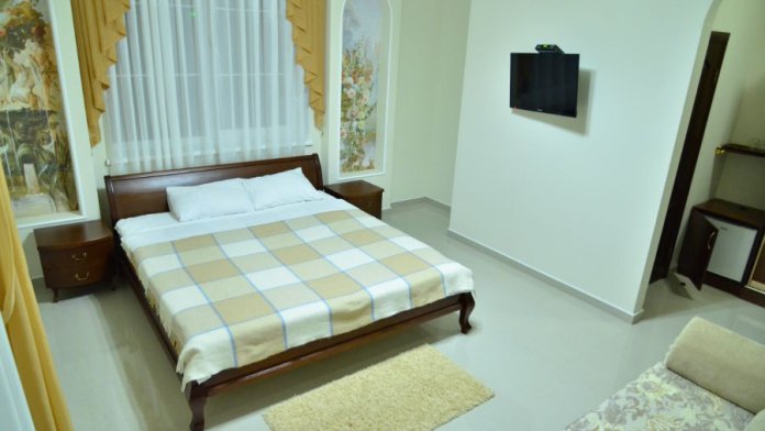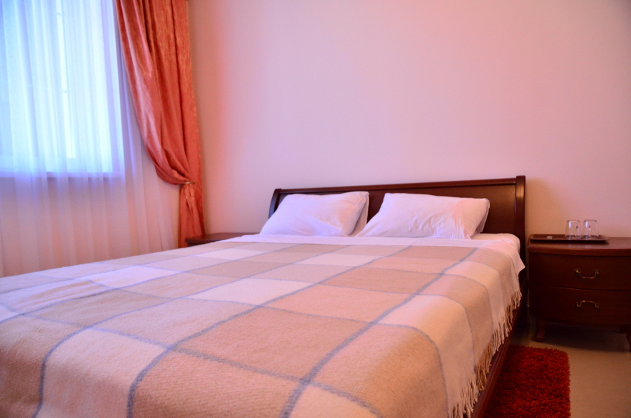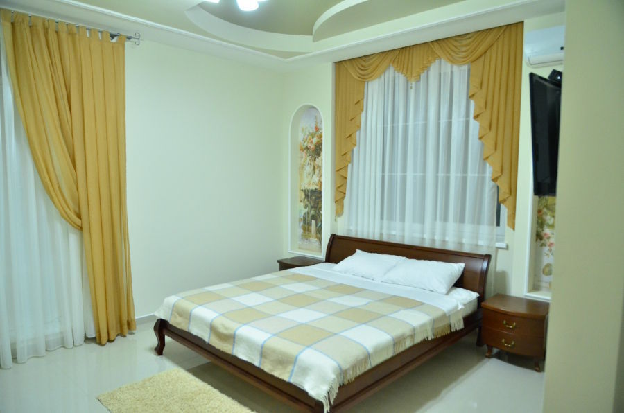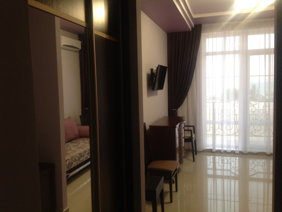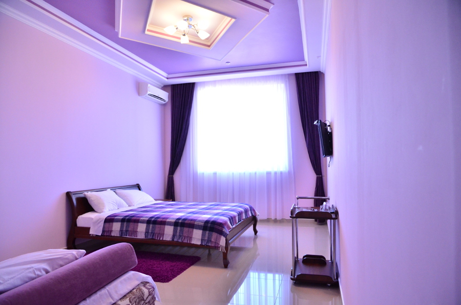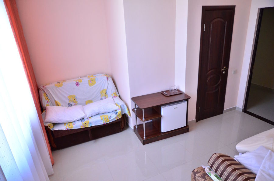 Каждый номер гармонично сочетает стиль и комфорт. Гостевые комнаты оснащены удобной современной мебелью, системой кондиционирования воздуха, телевизором, холодильником, Номер категории двухкомнатный Люкс состоит из спальни (с двуспальной кроватью с прикроватными тумбами, шкафом-купе) и гостевой комнаты с мягкой мебелью. Санузел: душ, туалет, раковина.