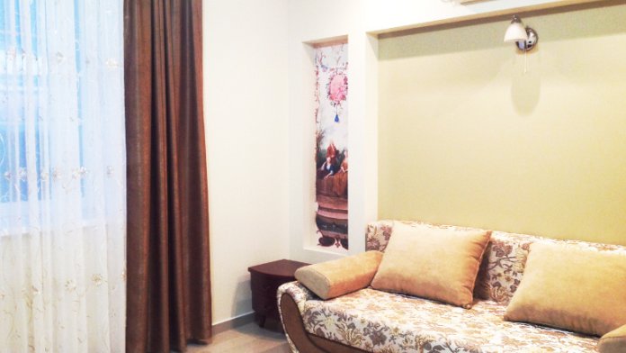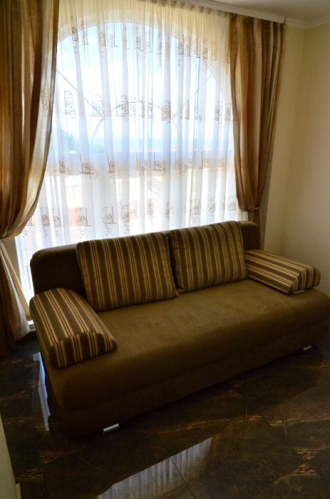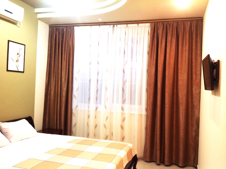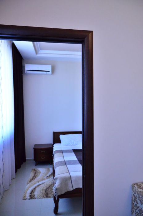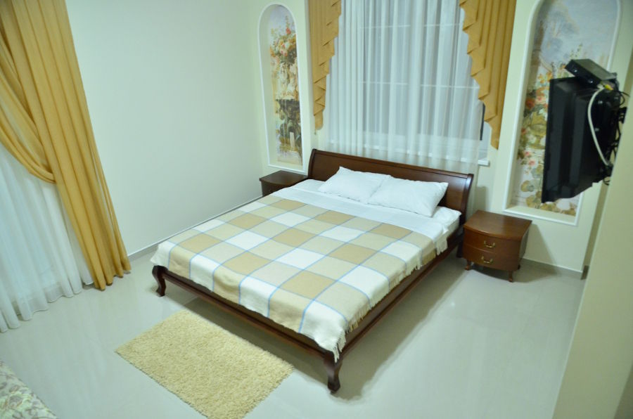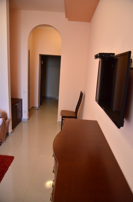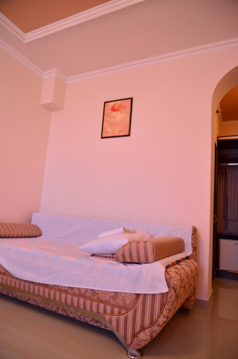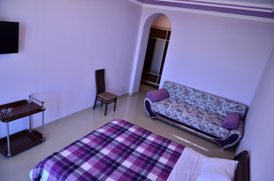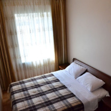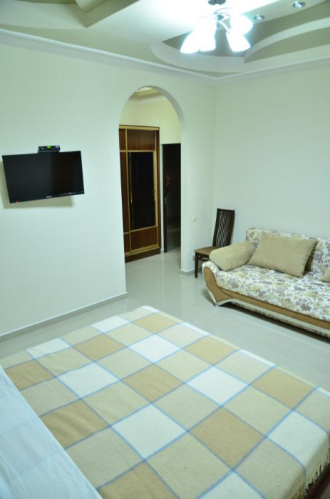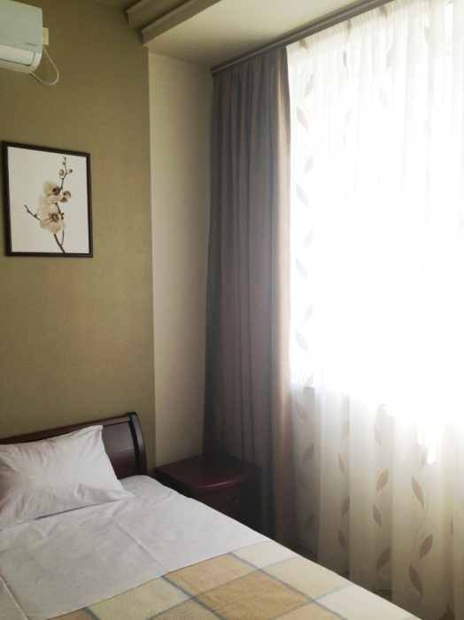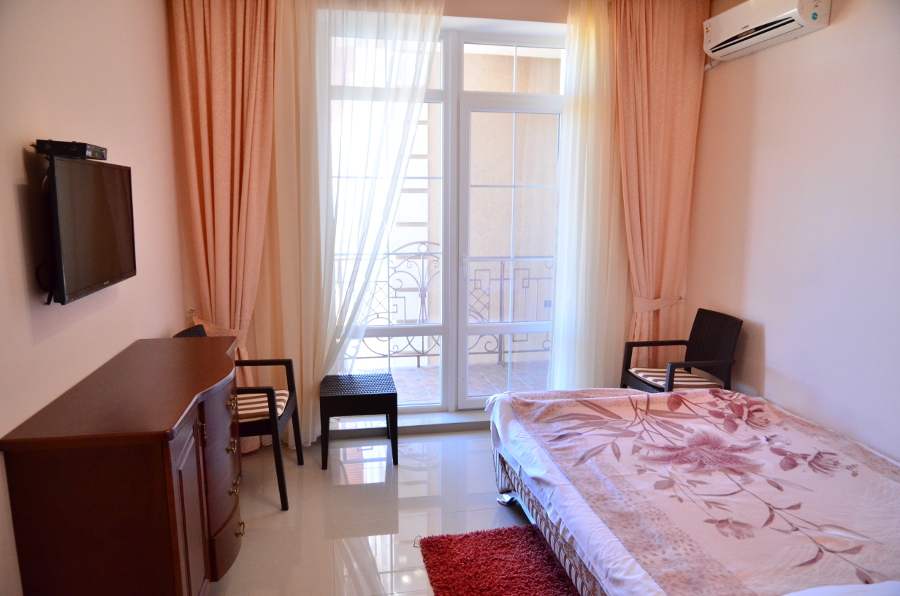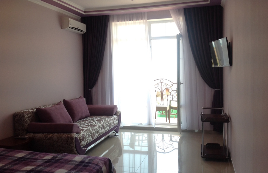 Каждый номер гармонично сочетает стиль и комфорт. Гостевые комнаты оснащены удобной современной мебелью, системой кондиционирования воздуха, телевизором, холодильником, Номер категории двухкомнатный Люкс состоит из спальни (с двуспальной кроватью с прикроватными тумбами, шкафом-купе) и гостевой комнаты с мягкой мебелью. Санузел: душ, туалет, раковина.