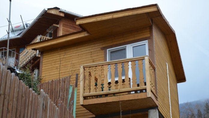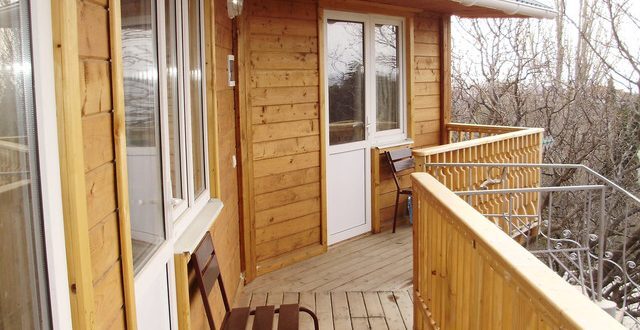 База отдыха «Футарк» - двухэтажное строение из дерева, 3 номера расположены с общим балконом с видом на море, винтовая лестница, общий двор, мангал.