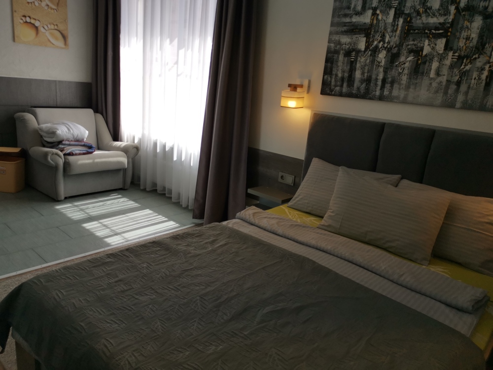 В каждом номере - санузел, душ, кондиционер, тв, двуспальная кровать, кресло-кровать, интернет WiFi, сейф.