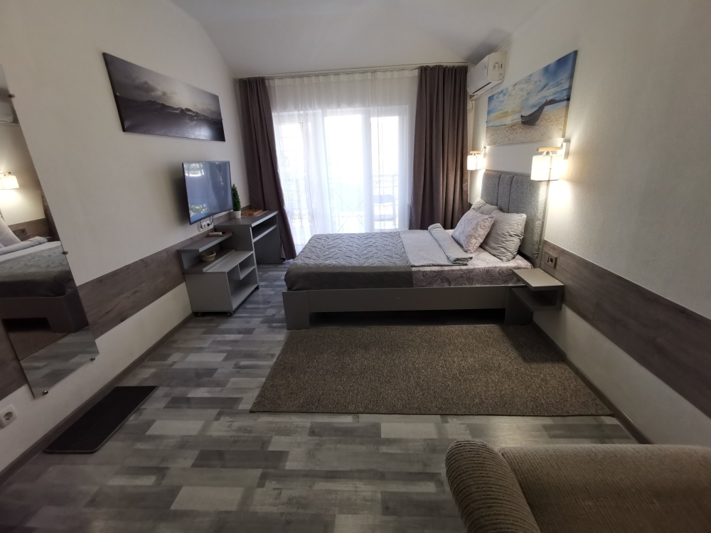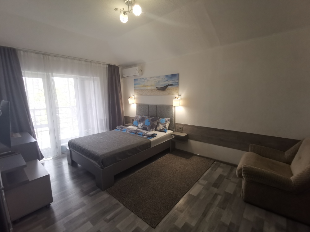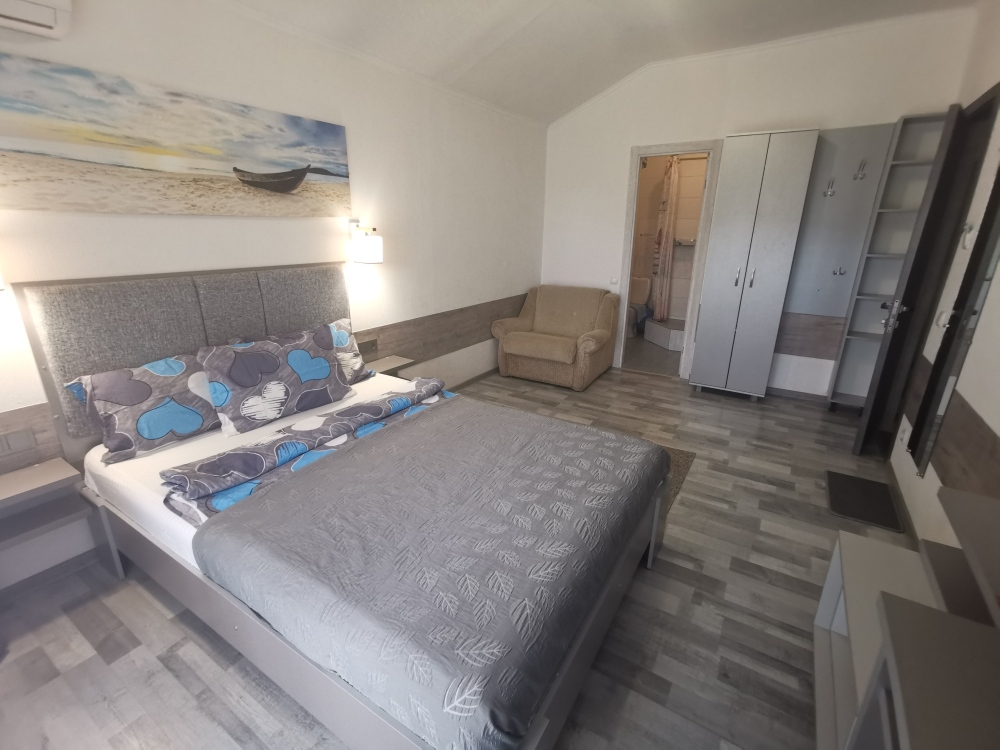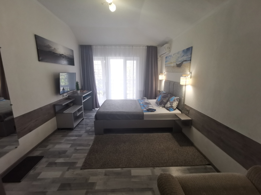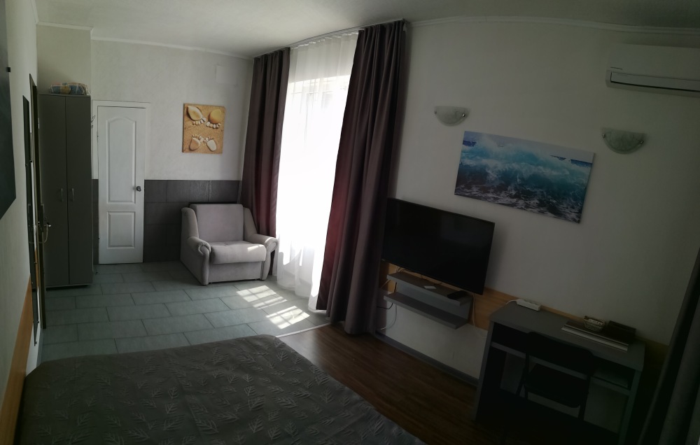 Для размещения гостям предлагают комнаты категории Люкс с видом на море. Комнаты оснащены всем необходимым: телевизор, кондиционер, шкаф, фен и санузел. Питание самостоятельное - в каждом номере своя мини-кухня (чайник, свч).
