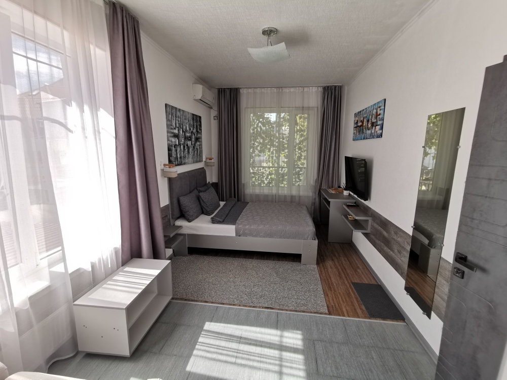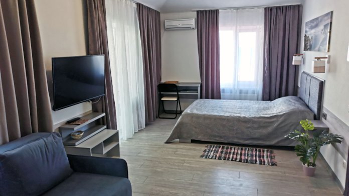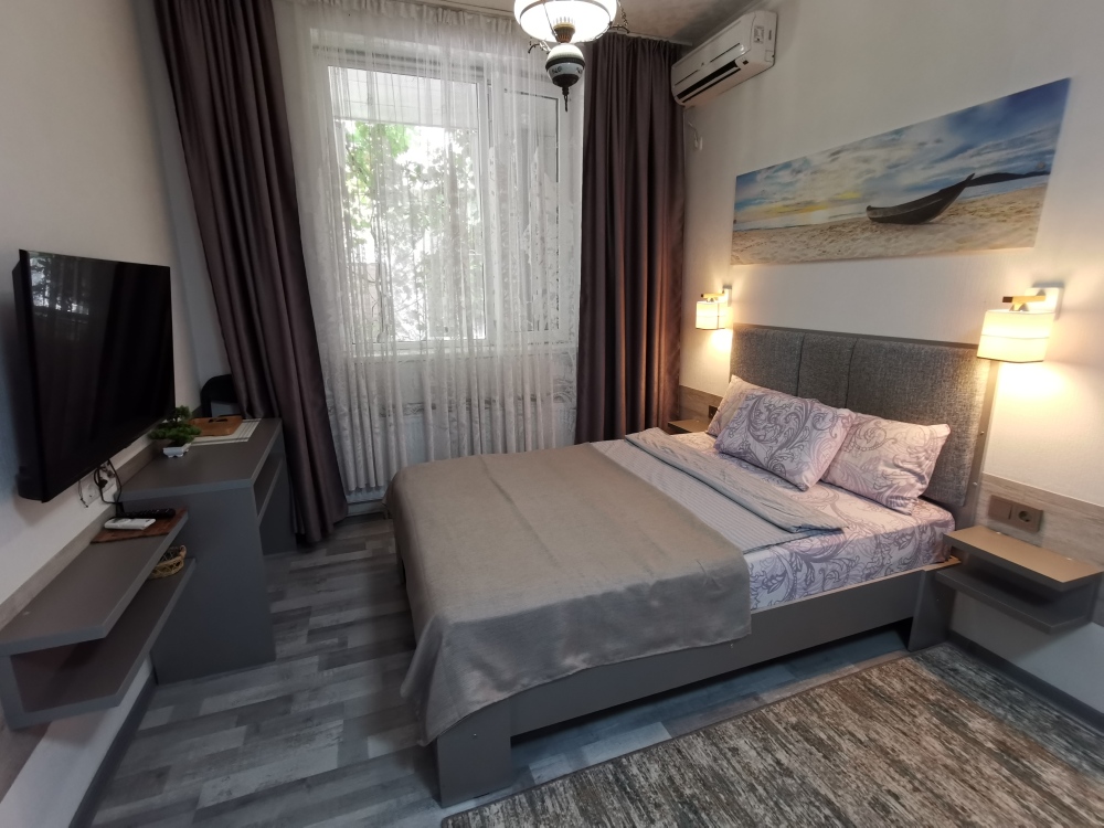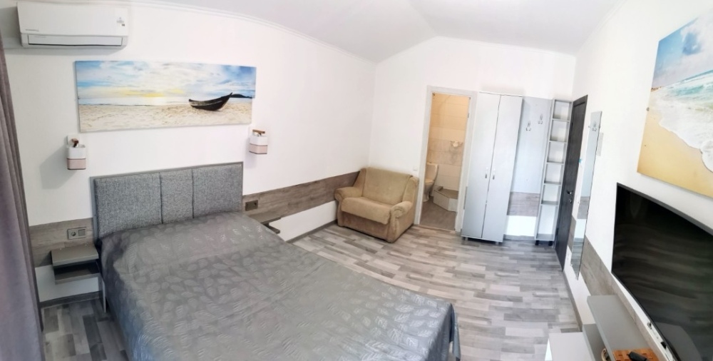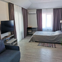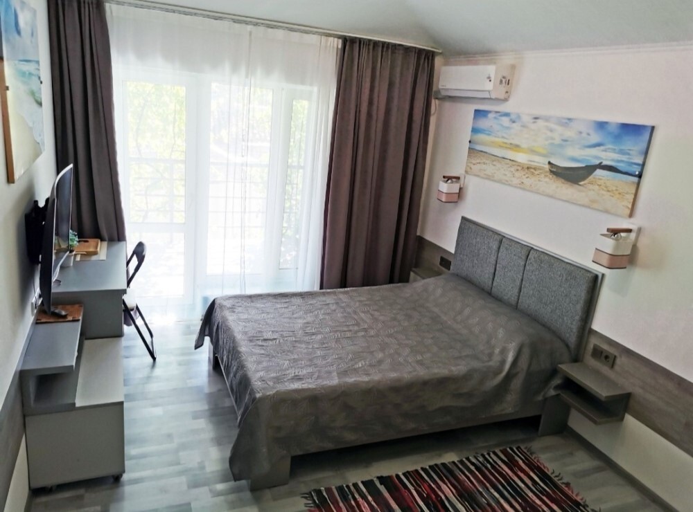 Для размещения гостям предлагают комнаты категории Люкс с видом на море. Комнаты оснащены всем необходимым: телевизор, кондиционер, шкаф, фен и санузел. Питание самостоятельное - в каждом номере своя мини-кухня (чайник, свч).