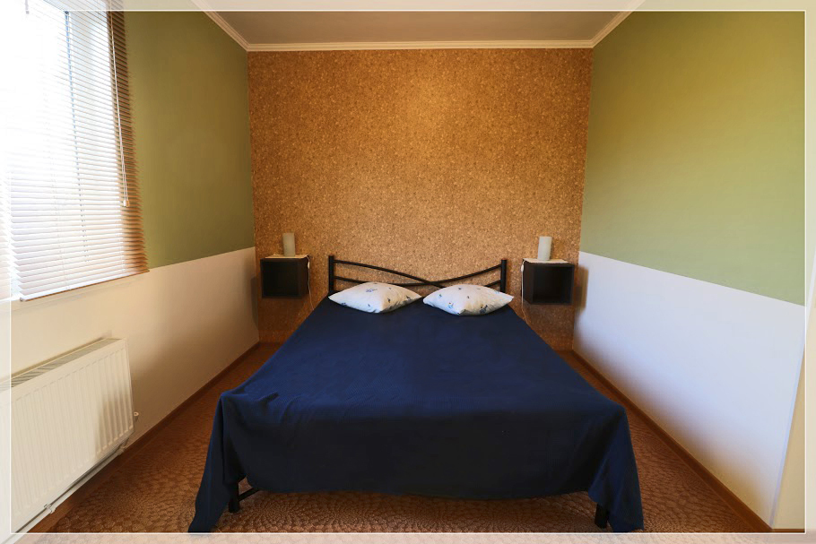 Номера удобно расположены — есть варианты с отдельным входом, на первом и втором этажах углового дома, а также с общей просторной террасой. В цокольном этаже одной половины дома находится большая кухня с всем необходимым для самостоятельного приготовления, а рядом — столы и телевизор для комфортного отдыха и приёма пищи.