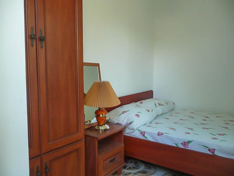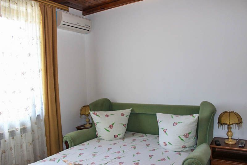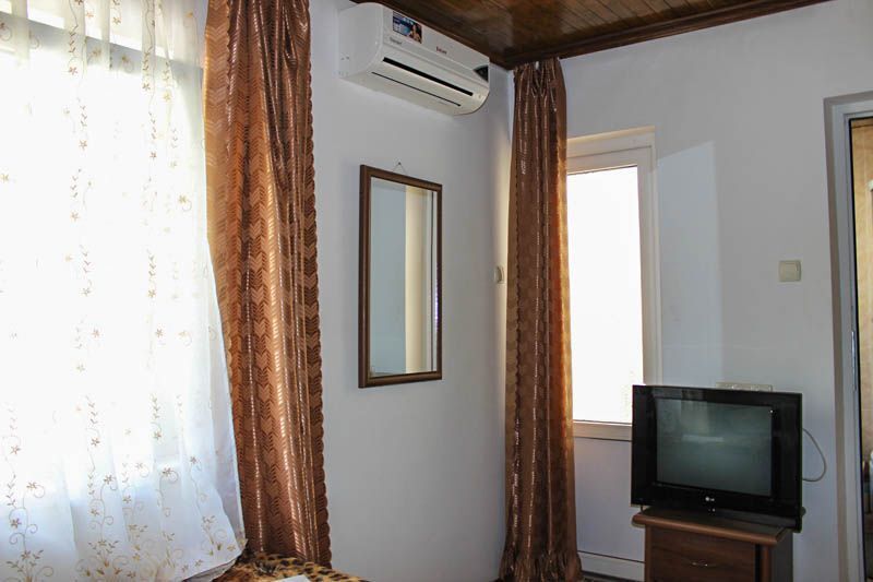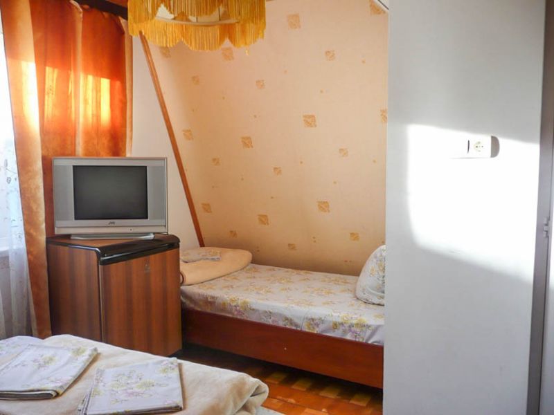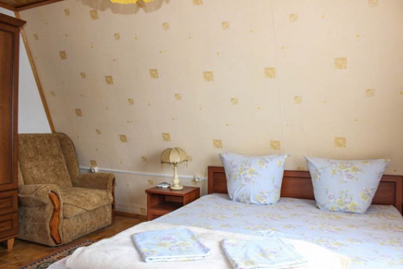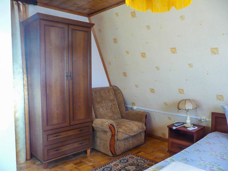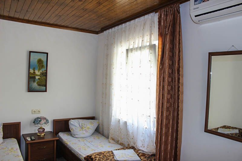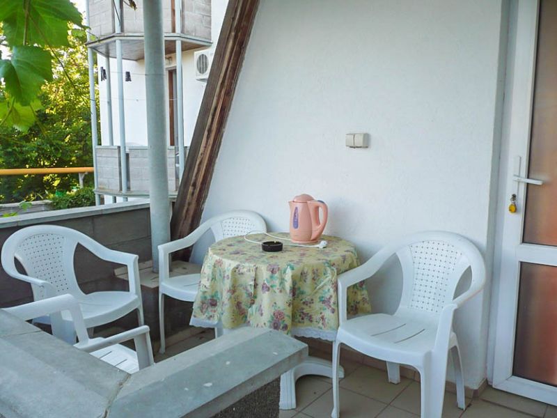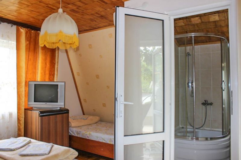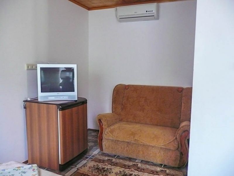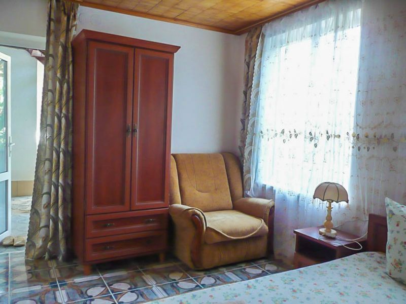 Комфортабельные комнаты, в которых могут отдыхать ,как один наш гость, так и семья из трех-четырех членов, имеют индивидуальные уголки отдыха: на балконах, верандах или в тени деревьев и винограда. Все комнаты оснащены индивидуальным санузлом с душевой кабинкой, удобным и комфортным мебельным гарнитуром, кондиционером, телевизором, почти во всех комнатах имеется свой холодильник. Успокаивающие пастельные тона, мягкие кровати, большие окна, светлые помещения, все это располагает к комфортному отдыху на побережье самого ласкового моря в мире.