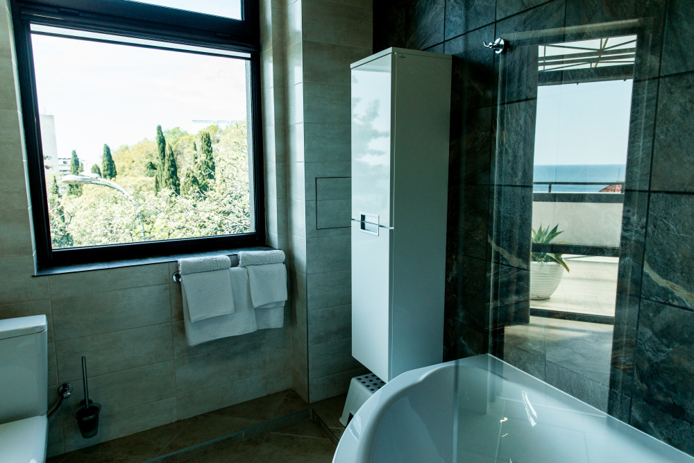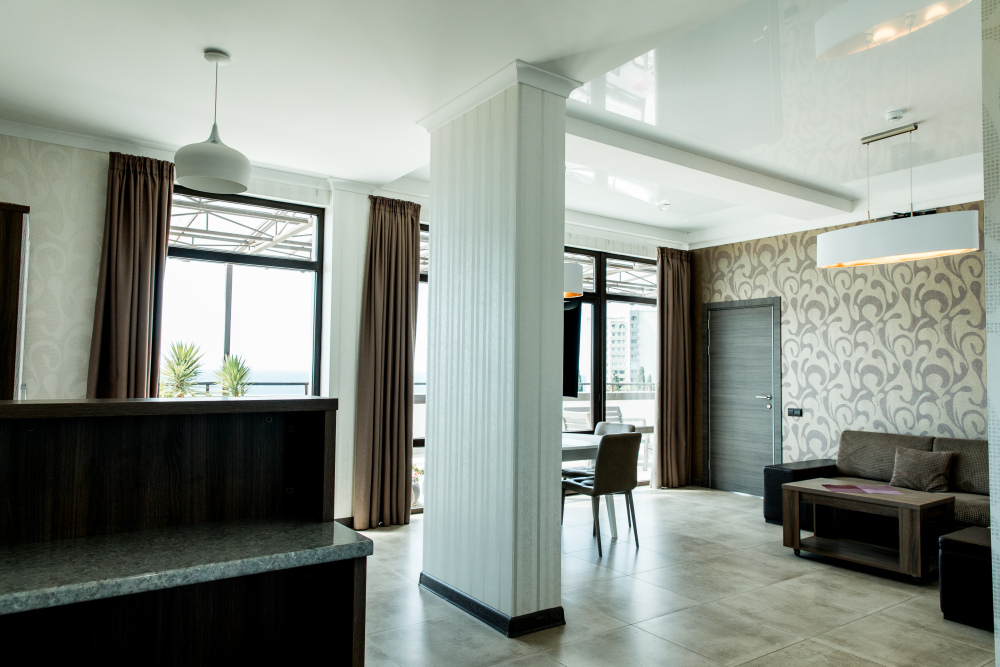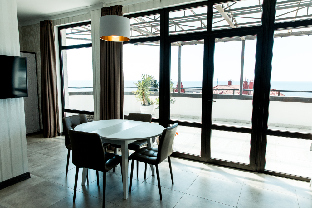 К Вашим услугам просторные апартаменты с дизайнерским ремонтом, видом на море и горы.