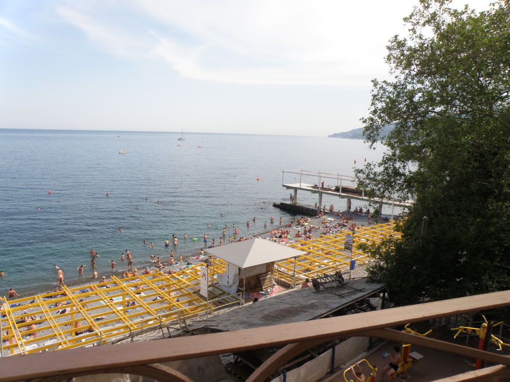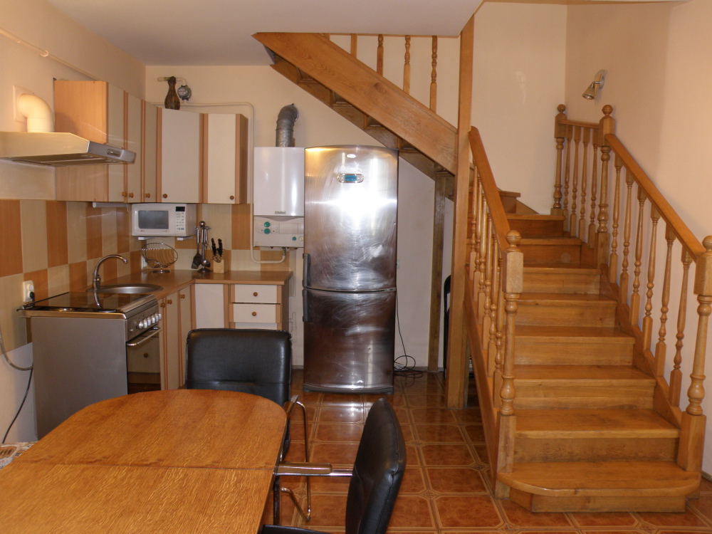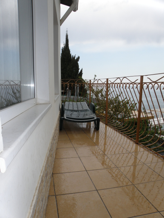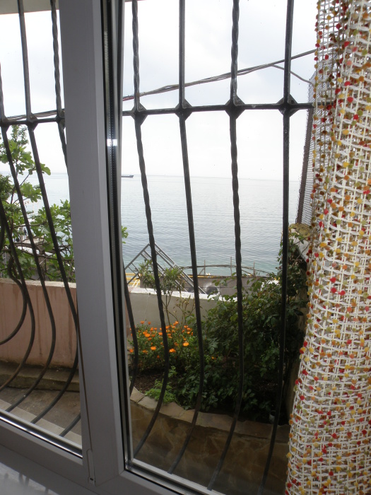 Двухэтажный коттедж площадью 50м2 со всеми удобствами,на втором этаже находится двуспальная кровать,кресло-кровать.На первом этаже полуторный диван.Квартира-студия,на втором этаже большие окна с видом на море.Находится над массандровским пляжем,старый центр Ялты.
