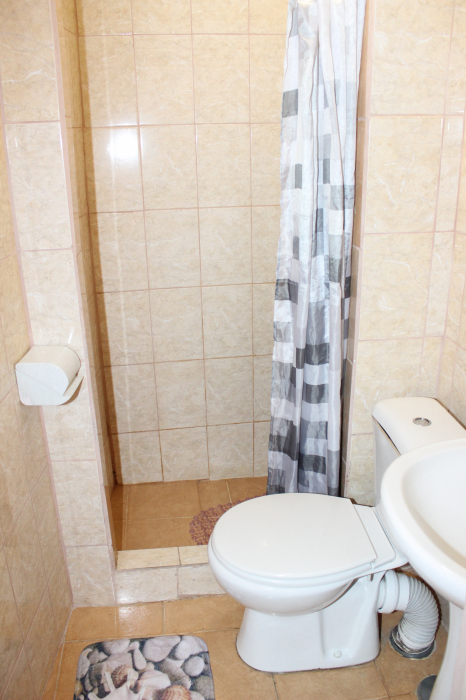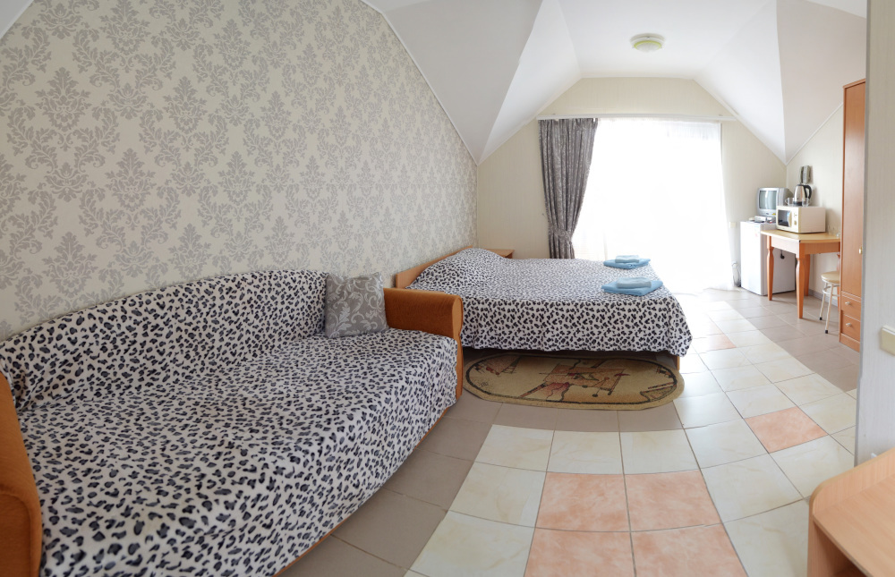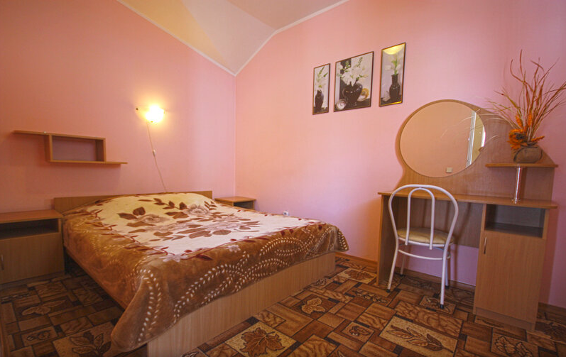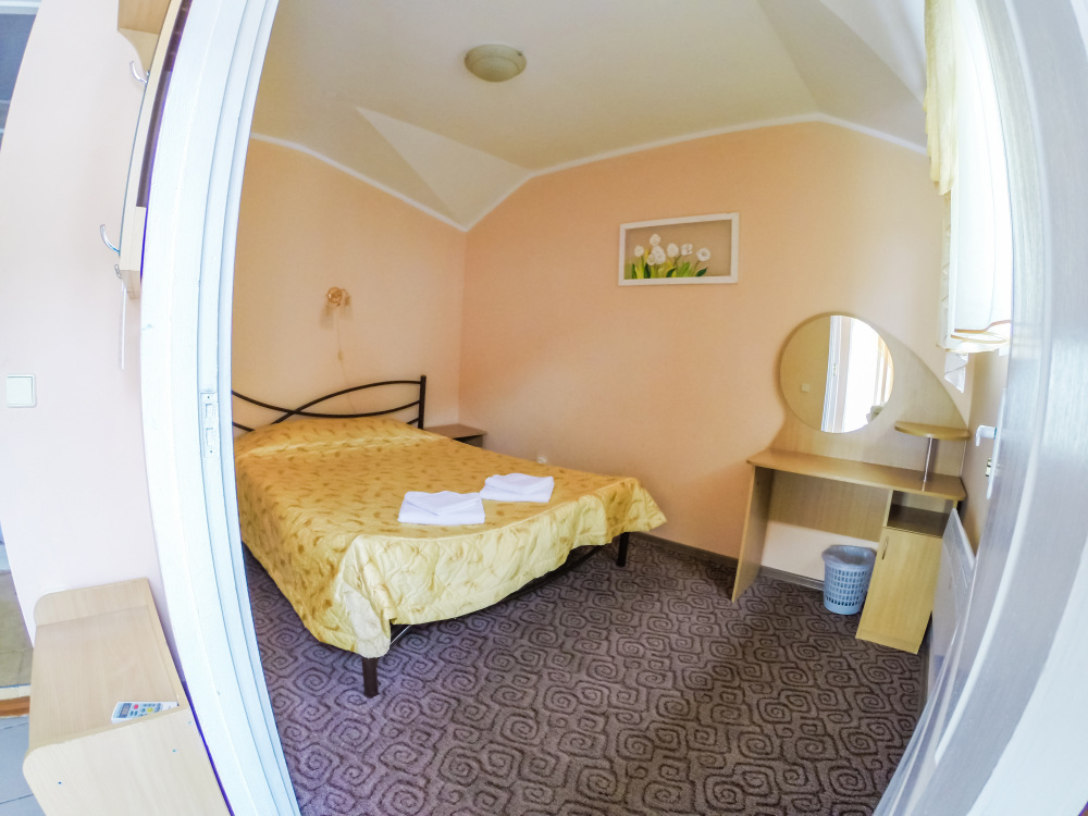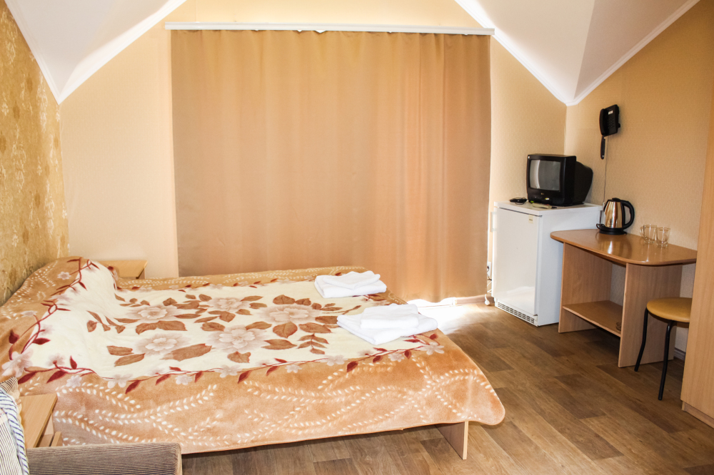 Отдельные двухкомнатные домики площадью 25-28 кв.м. на 2-3 человека со всеми удобствами (душ, телевизор, холодильник, кондиционер, чайник). Спальные места: двуспальная кровать и раскладной двухместный диван. Горячая и холодная вода круглосуточно.
