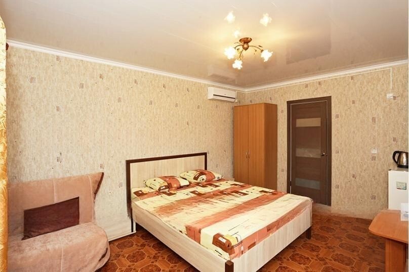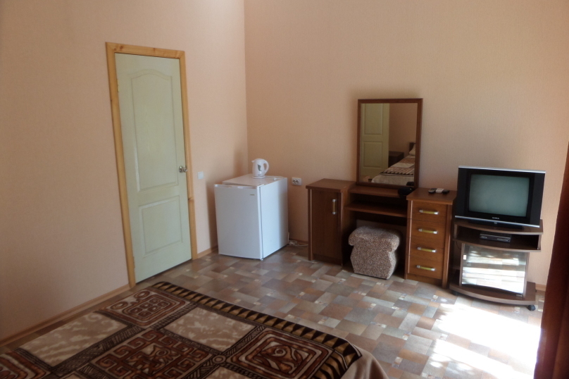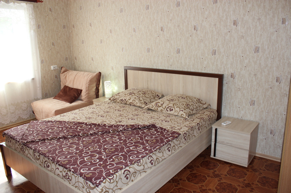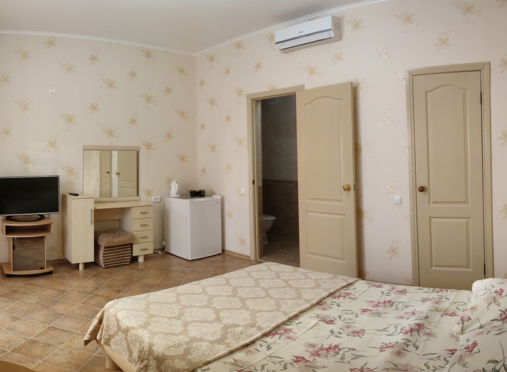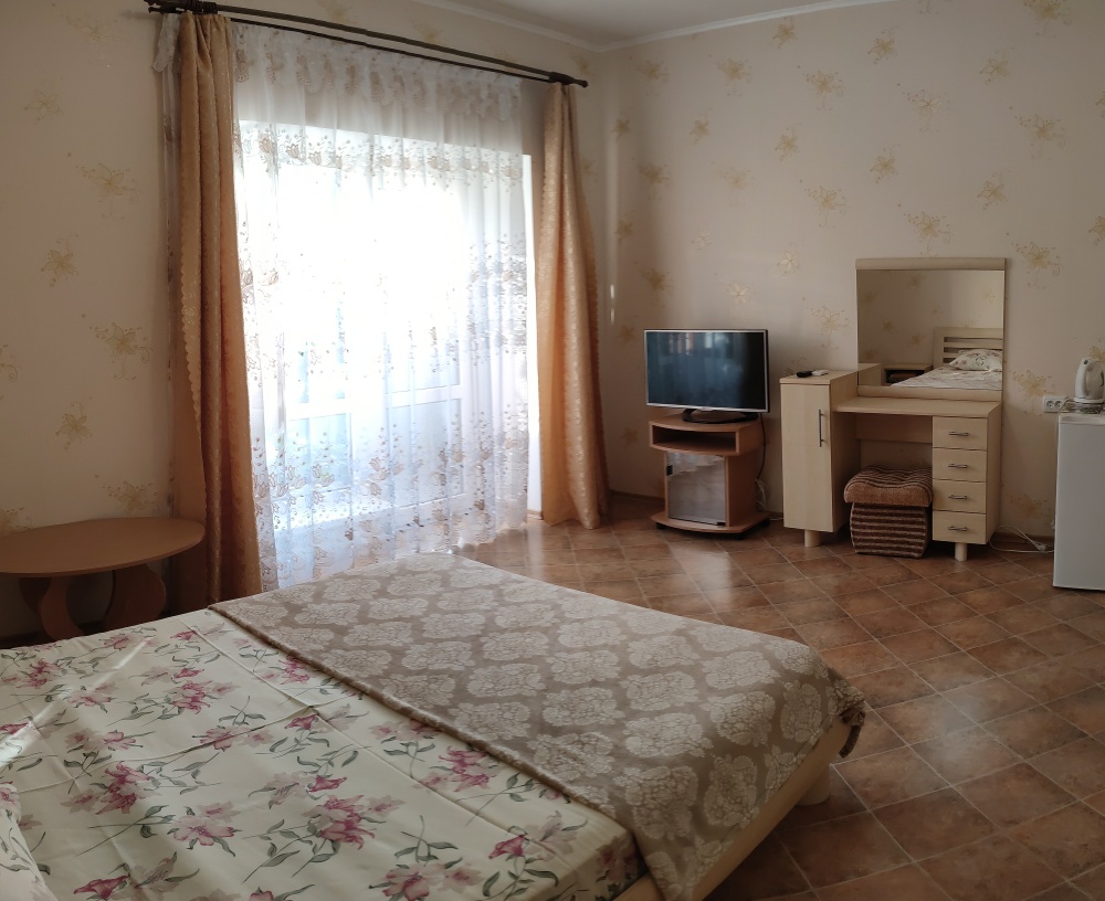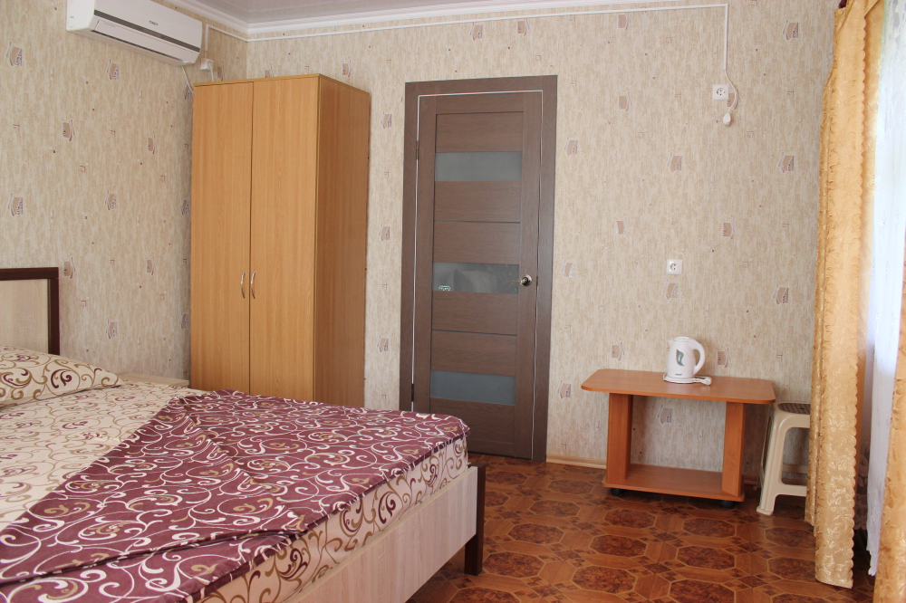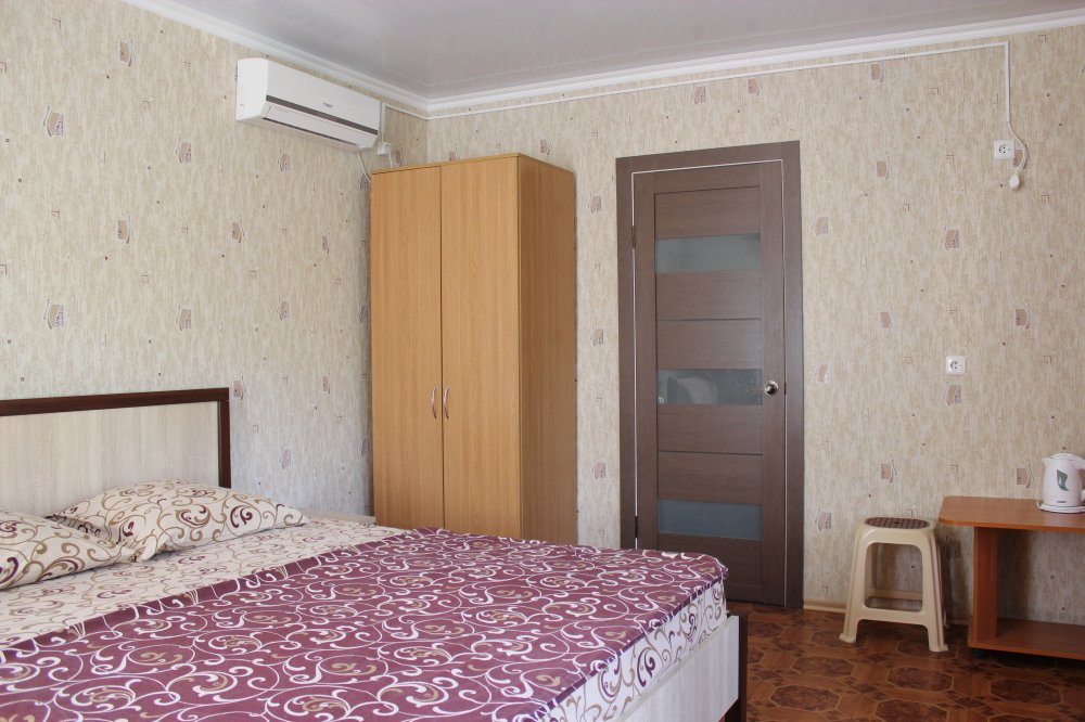 В наличии комнаты категории Стандарт с удобствами в номере. Номер выходит на общий балкон, где гость может расположиться за столиком в тени виноградника, наслаждаясь чашечкой чая или бокалом крымского вина. В комнате 2 основных места, дополнительное 3 место установлено. Также есть в номере: цифровое телевидение кондиционер, холодильник электрочайник. В комнате доступен Wi-Fi.