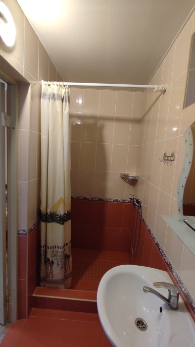 Номер с общим балконом (пластиковая мебель), шкаф, большая 2-спальная кровать + доп. место (диван-кровать) оснащен современной мебелью, спутниковым телевидением, кондиционером, холодильником, электрочайником.